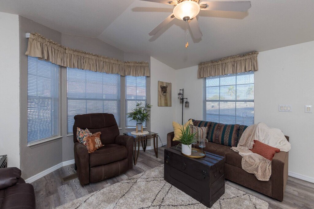 GORGEOUS FURNISHED 1 BEDROOM, 1 BATHROOM IN THE POPULAR COYOTE RANCH 55+GATED COMMUNITY BOASTS POOL, CLUB HOUSE, ACTIVITIES AND MORE. SUPER QUICK ACCESS TO FREWAYS, SHOPPING, AND RESTAURANTS. 3 MON MINIMUM. OWNER PAYS LOT FEE. CALL TODAY.