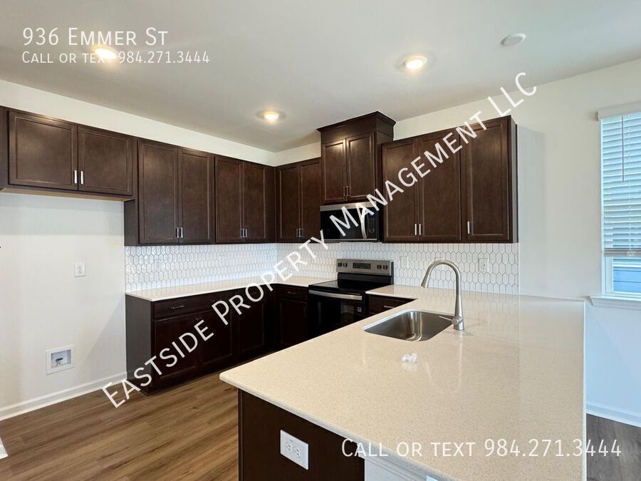 Welcoming foyer that flows to an open floor plan with 9-ft. first-floor ceilings, under-stair storage and luxury vinyl plank flooring throughout the first floor. Well-appointed kitchen with large island and breakfast bar, quartz countertops, tile backsplash, and SS appliances. A den provides space for a home office or playroom. Upstairs is a versatile loft awaits. Enjoy the convenience of a dedicated laundry room. Rest in the spacious primary bedroom, which features a walk-in closet and connecting bath that offers a dual-sink vanity. The back deck is ideal for outdoor entertaining and leisure. Utilities Not Included In Rent