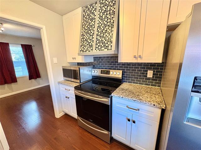 Beautifully updated home featuring a warm and inviting layout with stylish finishes throughout. The spacious living room showcases rich LVP flooring and a striking floor-to-ceiling brick fireplace that creates a stunning focal point and cozy gathering space. Large sliding glass doors fill the home with natural light and provide easy access to the backyard patio, making indoor-outdoor living effortless. The kitchen has been thoughtfully upgraded with granite countertops, stainless steel appliances, modern subway tile backsplash, and crisp white cabinetry offering ample storage and workspace. Its functional design flows seamlessly into the main living area, making it perfect for both everyday living and entertaining. Generously sized bedrooms offer plush carpeting, ceiling fans, & great natural light. The bathrooms feature updated vanities, modern fixtures, and clean finishes that provide a fresh and comfortable feel. Additional highlights include a dedicated laundry space with washer and dryer connections and convenient storage areas throughout the home. Step outside to enjoy the private backyard retreat complete with an expansive patio ideal for outdoor dining, relaxing, or entertaining guests. A built-in fire pit area adds charm and creates the perfect setting for cozy evenings outdoors. With its thoughtful updates, spacious layout, and comfortable living spaces, this home offers the perfect blend of style, functionality, and move-in ready convenience. Washer and Dryer included. We provide a Resident Benefits Package (RBP) to address common headaches for our residents. Our program handles insurance, identity protection, pest control, air filter changes, utility set up, credit building, rent rewards, at a rate of $55.00 a month, added to every property as a required program. More details upon application.
