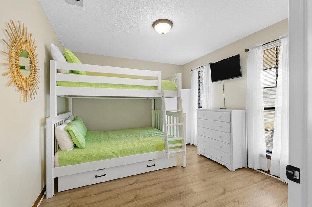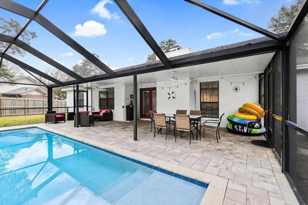 Feel at home in Sunny Side Retreat, a charming single-story home in the heart of Niceville, offering a blend of comfort and coastal style. This spacious getaway features a fully equipped kitchen, spacious living and dining areas, coastal-themed décor, and a private covered pool. The fenced backyard is perfect for kids. Guests have access to the entire property including the refreshing pool and fenced backyard. Located minutes from the MidBay Bridge, you're a short drive to the white-sand beaches of Destin and only 10 minutes from VPS Airport. Enjoy easy access to the beach, shopping, restaurants, and outdoor adventures. Local restaurants include The Wharf 850, LJ Schooners Dockside Restaurant, Toast! Wine Bar & Café, Ciao Bella Pizza, and Jim 'N Nick's BBQ. Destin Restaurants include Boshamps Seafood & Oyster House, Louisiana Lagniappe, Dewey Destin's Seafood, The Back Porch, and Mimmo's Ristorante Italiano. Area attractions include Fred Gannon Rocky Bayou State Park, Turkey Creek Nature Trail, Mattie Kelly Arts Center, Eglin Air Force Armament Museum, and Bluewater Bay Golf Club. Just across the bridge are Big Kahuna's Water & Adventure Park, HarborWalk Village, Crab Island, The Track – Destin, Gulfarium Marine Adventure Park, and Henderson Beach State Park (Destin). Pets are not allowed. [SI]