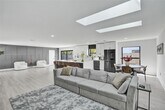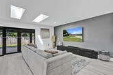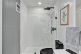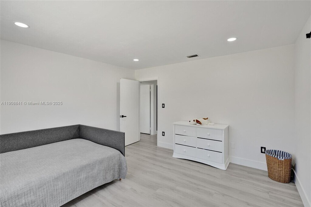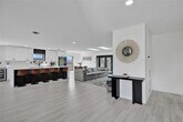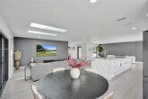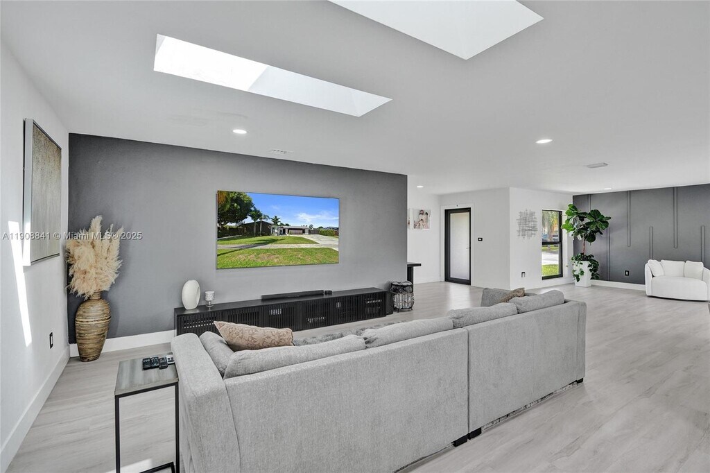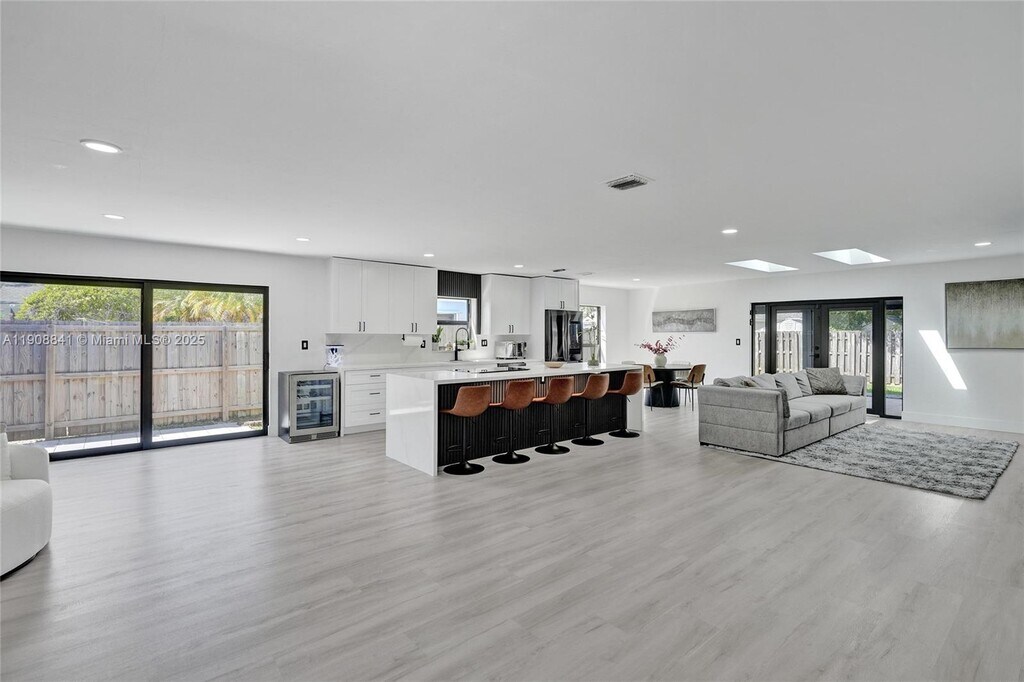 Stunning fully renovated one-story home with an open modern layout flooded with natural light from skylights and wide windows. The showpiece kitchen features an oversized waterfall island, quartz counters, custom cabinetry, and black stainless steel appliances, all overlooking the main living area for seamless entertaining. Sleek bathrooms with designer tile and matte black fixtures. Spacious bedrooms, large private yard, and a striking modern driveway with ample parking. Home offers peace of mind with impact windows, 2020 roof, 2023 AC, tankless water heater, and mini split AC in garage. Truly move-in ready with every detail thoughtfully updated — a perfect blend of style and functionality in a desirable location close to parks, schools, shops and highways.