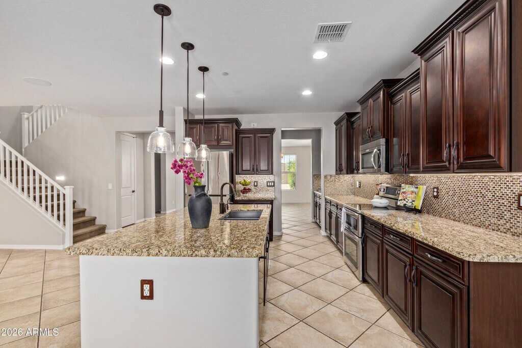 Live in the heart of it all w/ quick access to the Loop 101,outdoor adventures at Lake Pleasant,premier shopping & dining & Arrowhead Towne Center,w/ year-round entertainment at P83. Located in the Excelling Peoria School District attending Liberty HS & Sunset Heights Elementary School (K-8). The Meadows offer multi parks,community pool,and even pickleball courts. The home boasts nearly 4,800 sq ft,w/ impressive home features like solar,a private pool complete w/ a water slide,Basketball hoop space for ultimate backyard fun,& a RV gate w/ space to store low-profile items securely behind the fence. The first floor offers formal front room,open office/den,Massive kitchen w/ granite countertop & island that doubles as a breakfast bar,Butler's pantry,dining room,*** SEE MORE*** Mudroom,and an oversized entertainment room designed for gatherings. The first floor also includes one bedroom and a full bathroomperfect for guests or multi-generational living. On the 2nd Floor: retreat to the luxurious primary suite featuring a private sitting room,two large walk-in closets,and a spa-like bathroom with separate vanities and mirrors,garden tub,expansive walk-in shower,and private toilet room. An extra-large loft with its own closet provides additional living or flex space. Four additional generously sized bedrooms complete the second level,including two connected by a Jack-and-Jill bathroom,plus another full bathroom and a spacious laundry room with sink and extra cabinetry for added convenience. So much more to this property,that we can not list it all. This extraordinary rental offers space,style,and a prime location close to everything Peoria has to offer. Act nowhomes of this caliber,size,and location don't last long! Don't miss this incredible opportunity! Pet POLICY: No Cats,up to 2 dogs. $400 per pet deposit,Pet rent is $50 per pet that weighs up to 40lbs and $100 per pet for that weigh more than 40 lbs. Tenant benefit package: $45 per month per Adult
