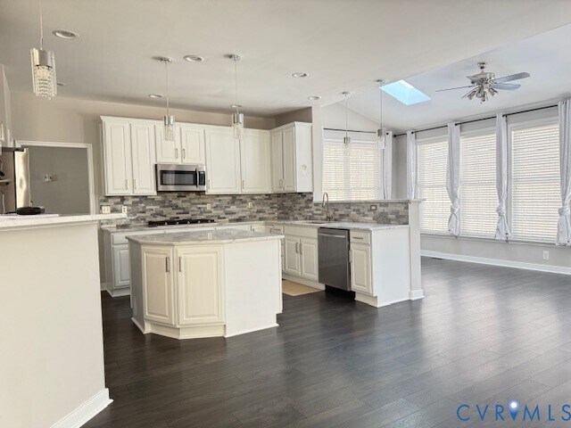 Two level Transitional Brick/Vinyl Home with four bedrooms and 2-1/2 Baths at the end of a Cul-de-Sac lot with lighted road entry to subdivision. Home in newer condition with step down access leading to an Inground pool. 2-Car Side Entry Garage with exterior pull down screen for an airy feel when hanging out in garage. Open Two level foyer overlooks the Dual Staircase. Large Powder room off the foyer,coat closet,lighted wall niche. The Kitchen open floorplan overlooks a step-down Family Room,Sunroom/Dining featuring Quartz Countertops with Stone Backsplash. New Stainless Refrigerator,Double Ovens,Countertop Gas Range,Dishwasher,Microwave. Kitchen boasts a Breakfast Bar,Center Island with Cabinetry,Recess and Pin Lighting and Gorgeous Chandelier off the Kitchen. The Sunroom off the Kitchen features windows on all three sides and Two vaulted ceiling Skylights. A Large and open Family Room features Entry Columns,Gas Log Fireplace,Wall TV Niche and TV Wall mount over the Fireplace,Ceiling Fan,Surround Sounds Speakers. Formal Living features crown/picture molding and Formal Dining features a Trey Ceiling with upper end lighting. The second level displays four bedrooms to include the Primary Bedroom with a Step Down Sitting Area,Two spacious Walk In Closets and the On-Suite Bath with Double Entry Doors,Separate Water Closet,Stand Up Shower with Full Seating,Jetted Deep Tub,Double Sink Cabinetry. Additional Three Bedrooms feature TV Wall Mounts with TV to remain in AS IS condition. A Full Hall Bath with Double Sink Cabinetry and Laundry Room with a Utility Sink and Top End Washer and Dryer to convey in AS IS condition. Additional features are window treatments in each window,Upgraded Thermostats,Verizon internet ready,Front Lawn Sprinkler System. Tenants are responsible for all maintenance expenses of inground pool for entire operating season. Pets conditional with a minimum $500 refundable pet deposit if approved.