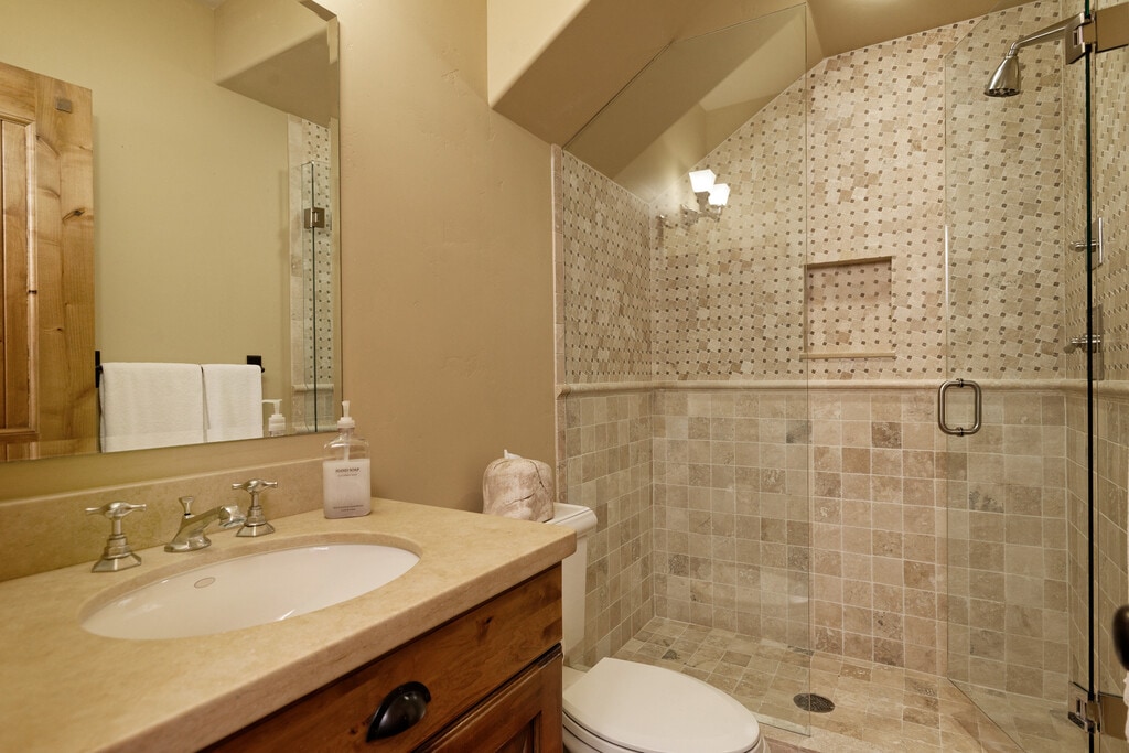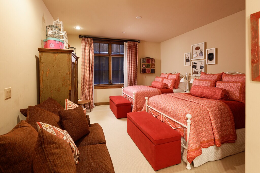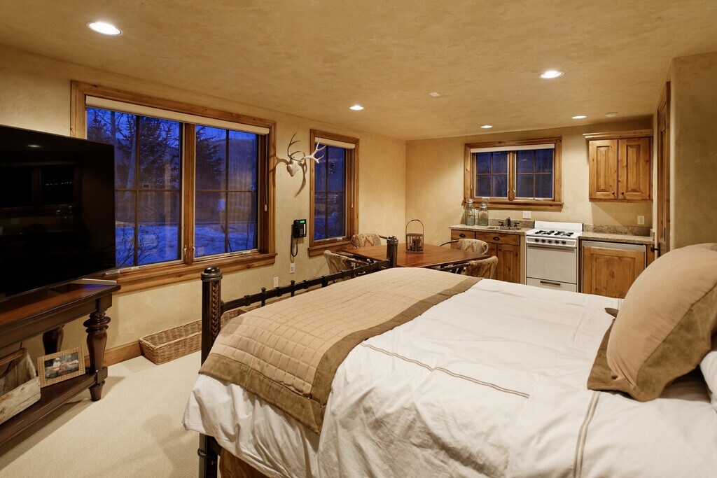 Experience Aspen’s best location at this Top of Mill home, offering seven bedrooms, seven bathrooms and one powder room and rare ski-in access from Aspen Mountain. With grand architecture and luxurious mountain-chic décor, this home is perfect for a large family or group. It features an ideal layout with expansive gathering spaces, five bedrooms in the main house, and a detached two-bedroom apartment that is perfect for a nanny or staff overflow. The Top of Mill home is centered around a magnificent Great Room, featuring a towering stone fireplace, dramatic log beams, oversized sofas, and stunning views from two opposing walls of windows. The gourmet kitchen is fully stocked and beautifully designed with high end appliances and stone countertops. The master bedroom features another impressive fireplace with a sitting area, a dramatic four-poster bed, and luxurious en-suite bathroom. Downstairs, the family room has a wet bar and is adjacent to the lower-level bedrooms, making it a great space for watching sports or hanging out with the kids. The separate apartment has two bedrooms, one bathroom, and a kitchenette. The home features two beautiful outdoor spaces: a front deck overlooking town with views of Red Mountain and the back patio that offers ski-in access from Aspen Mountain, a hot tub, and luxurious lounge furniture. The two-car garage simplifies parking. However, most guests rarely touch their car once they arrive. The home is within walking distance of everything Aspen offers, and a free shuttle – the Downtowner – services this neighborhood. For discerning travelers looking for a remarkable Aspen vacation home, Top of Mill checks all the boxes and then some. STR 083970