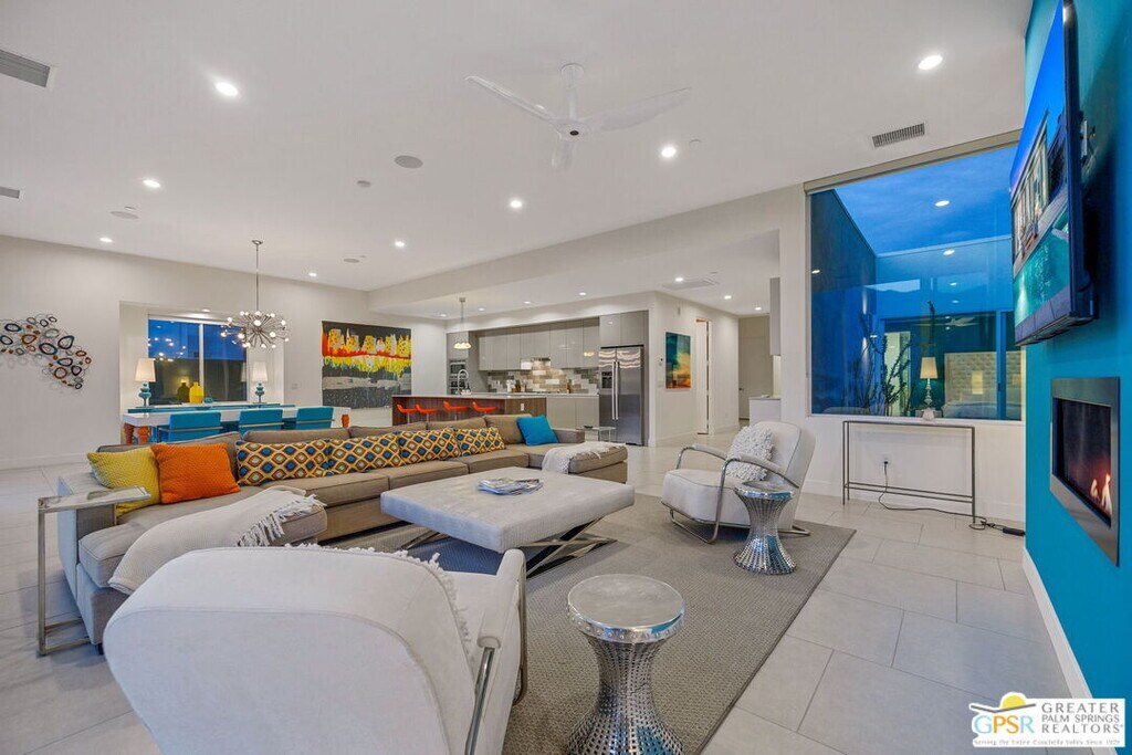 *** Monthly Rates: November to April: $12,000. May to October: Call for pricing. Availability: Now through the rest of the 2026/2027 Season. *** Indulge in the epitome of luxury in the heart of Palm Springs. Envision your ideal retreat, overlooking the breathtaking scenery of Escena Golf Club's 18th fairway. This sophisticated oasis embraces contemporary refinement, offering a generous 2,517 sq ft open floor plan with three bedrooms and three bathrooms, showcasing chic interior design reminiscent of the perfect blend between Elle Decor and Dwell Magazine. Elevate your living experience with sliding glass doors that grace both the living and dining areas, seamlessly connecting you with the great outdoors. Revel in the fresh, revitalizing air as you witness awe-inspiring sunsets. Alternatively, entertain indoors within the unique island-style kitchen, complete with soaring ceilings that infuse an air of grandeur into this modern sanctuary. Indulge in serene evenings within the private en-suite courtyard, designed for tranquility with plush seating encircling a welcoming firepit, ideal for stargazing beneath the shimmering Palm Springs skies. Pamper yourself in the spa-like master bath, boasting dual vanities, quartz counters, a beautifully tiled walk-in shower, and two closets, offering pure indulgence at every corner. This sun-drenched modernist abode is perfectly situated to explore all that Palm Springs has to offer. The two guest bedrooms provide ample privacy from the master suite. Additionally, you'll find convenience in the nearby Escena dog parks or enjoy an unforgettable evening at the Golf Club Lounge & Grill. Discover the pinnacle of refined living at Escena Golf Club. Make your reservation today and savor the essence of luxury in beautiful Palm Springs. MLS# 23-273361
