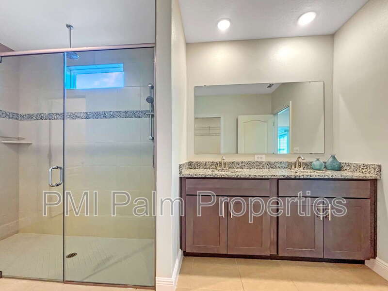 Welcome to this brand-new construction home offering modern finishes, spacious living, and peaceful water views in one of Port St. Lucie’s newest communities. With thoughtful upgrades throughout and a flexible floor plan that includes TWO master suites, this home delivers exceptional comfort and style for long-term renters seeking something a step above the rest. Step inside to a bright and open great room with plenty of natural light and an easy flow for relaxing or entertaining. The upgraded kitchen features solid-surface countertops, upgraded cabinetry, and brand-new appliances — including refrigerator, washer, and dryer. The spacious chef-inspired kitchen serves as the heart of the home, featuring sleek cabinetry, stainless steel appliances, granite countertops, a large center island with bar seating, and an elegant tile backsplash. It seamlessly flows into the expansive living area ideal for entertaining, relaxing with family, or hosting gatherings. Durable EVP flooring throughout the main living areas gives the home a clean, elevated look while staying easy to maintain. The floor plan includes a first-floor primary bedroom with a private bath, plus a second master suite upstairs, offering ideal options for guests, multi-generational living, or a private work-from-home retreat. Enjoy Florida living from your covered lanai overlooking the water — perfect for morning coffee, quiet evenings, or simply soaking in the view. Blinds are already installed throughout the home for immediate convenience. This home has never been lived in and is ready for its very first long-term tenant. This house is unfurnished - furnishings in photos shown for staging only. ***1st month and security deposit only*** Home Highlights: • Brand-new construction • 4 bedrooms / 3 bathrooms • TWO master suites (one up, one down) • Office • EVP flooring in main areas • Upgraded kitchen w/ solid-surface counters • Brand-new appliances: fridge, washer, dryer • Blinds installed throughout • Covered lanai with water views • Bright, open great room • CBS construction for quiet, efficient living == Rental Details: *Lease Term: 12+ months *Availability: ASAP *Pets: Allowed. Pet application fee and monthly fees apply. Application Info: *$65 application fee per adult (non-refundable) *1–3 business-day processing *Minimum credit score 650 (co-signer may be required) *No smoking Important Notice: Beware of scammers! PMI Palm Properties is the only authorized leasing agent. We never request wire transfers or lease directly through owners. We do not list on Craigslist or Facebook Marketplace. Upon approval tenants will be subject to a $150 one-time tenant set up fee. Tenant Benefit Package: $49.95 monthly Tenant benefit package which includes- Monthly HVAC Filters, Pest Control, Renters Insurance (all 3 are needed for lease compliance) and bonus $1M Identity Theft Protection, Credit Building, and a Resident Rewards Program.