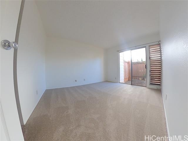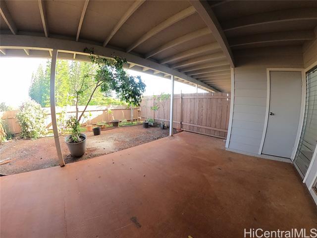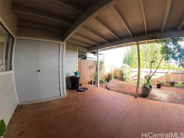 Welcome to your private garden oasis in the heart of Mililani Town! This quaint 2 bedroom, 1 bath townhouse at Meheula Hale Patio Homes is partially remodeled. Fresh paint, new carpet, refurbished cabinets and a refinished tub. Appliances include a refrigerator, range, and washer/dryer. The spacious layout features two lanais at the front and back of the unit. Back lanai is surrounded by landscaping that creates a peaceful outdoor retreat. 1-year lease. Water/Sewer is included in the rent. Tenant is responsible for electricity, cable/internet, and yard maintenance. Sorry, no smoking and no pets. $20 application fee per applicant over 18 years of age. Tenant is required to carry renters insurance for entire lease term. For more information or to schedule a showing, contact Esther at or
