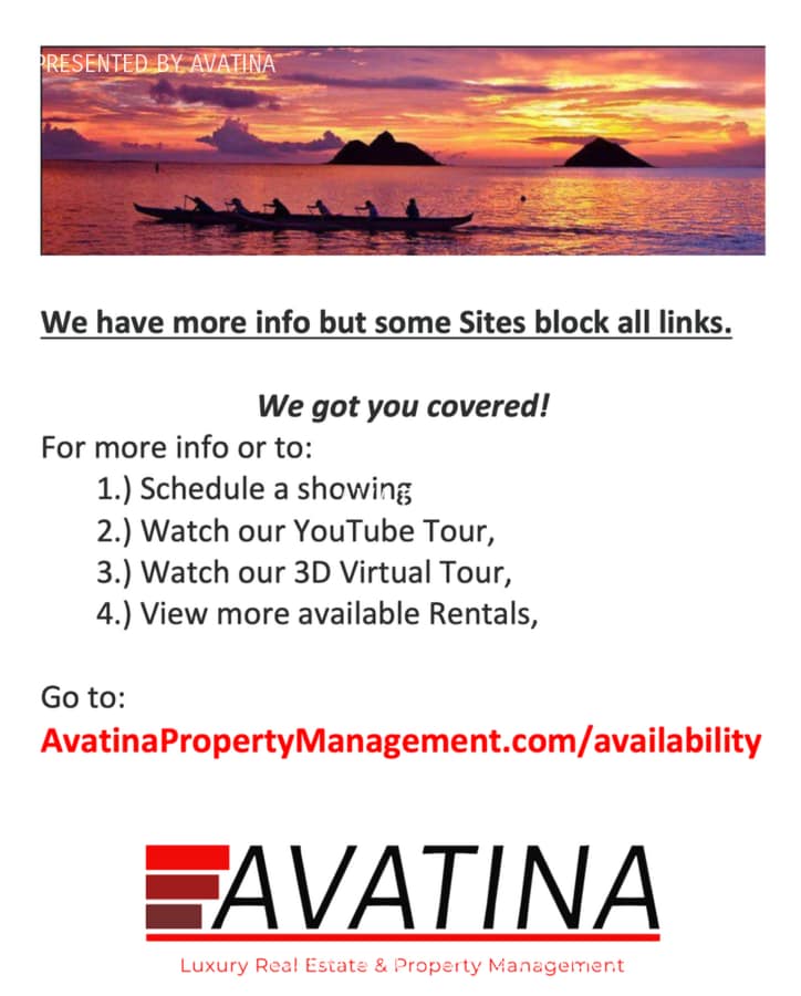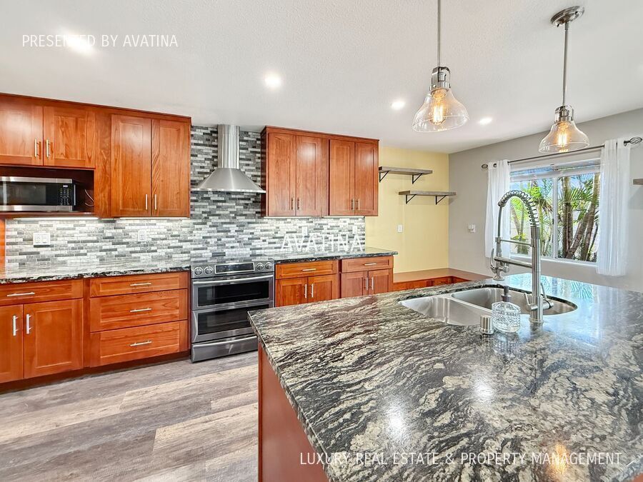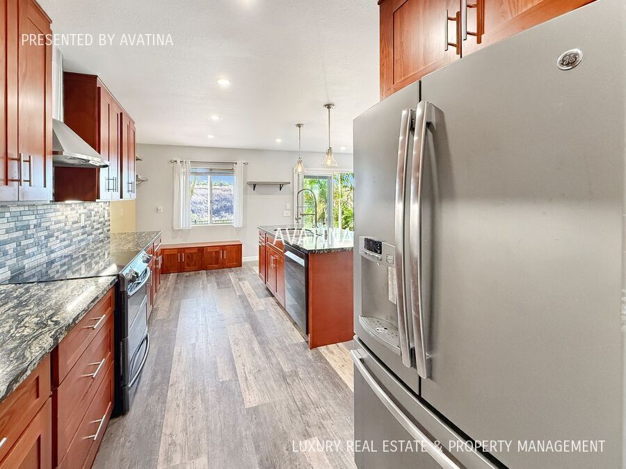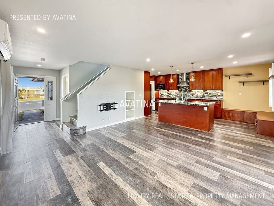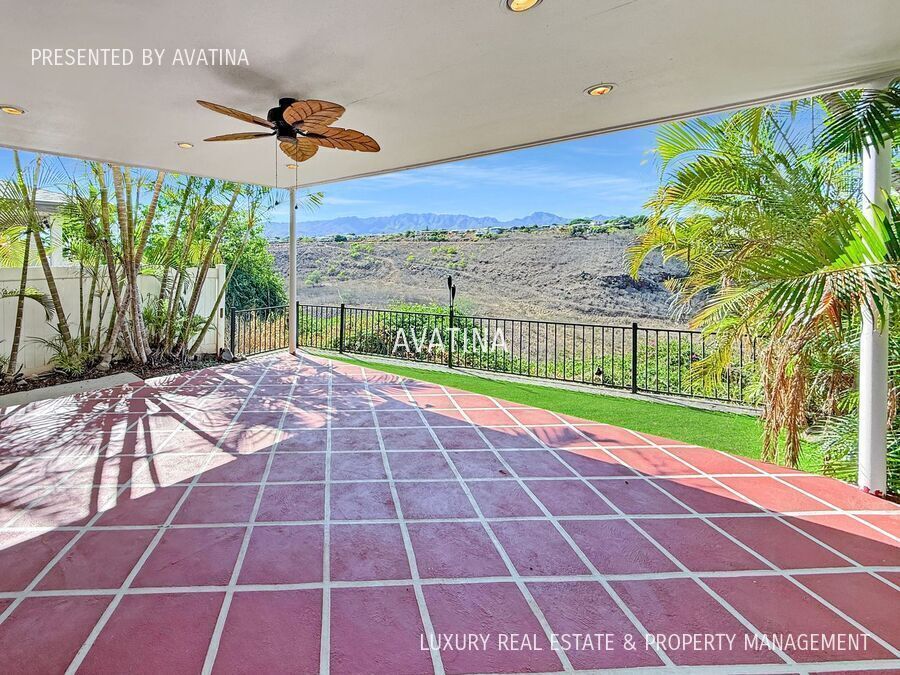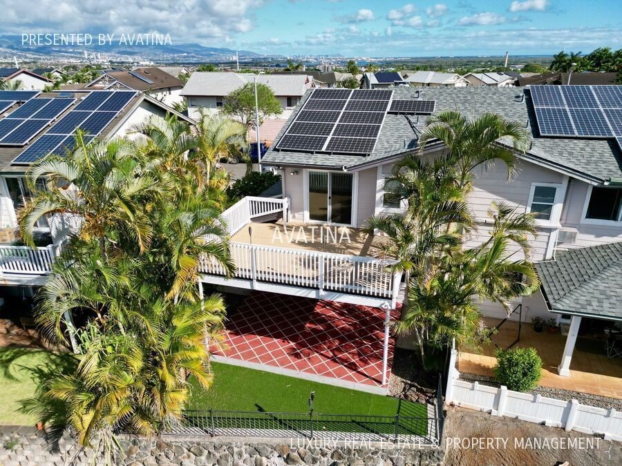 Welcome to this gorgeous attached family home situated on a rim lot with amazing views! Inside you'll find luxury vinyl plank flooring, a remodeled chef's kitchen, plenty storage, stainless appliances, stone countertops and a huge eat-in bar! The open concept kitchen overlooks the living and dining areas with sliding glass doors that open onto your private covered lanai! This is the perfect place for entertaining! Upstairs you’ll find the spacious primary suite with vaulted ceilings, plantation shutters, split AC and a walk in closet. Also included is a gorgeous ensuite bathroom plus your own private deck with sweeping views! Across the hall are two more bedrooms with plantation shutters, split AC, ceiling fans, and full size closets. Both share the full size hall bathroom. Did I mention that the home has a huge 20 panel photovoltaic system making electricity and a solar hot water heater! Huge electrical savings plus there is a two car garage with full sized washer and dryer and its own split AC! Park on the driveway and the garage could be your gym, workshop or anything else you desire. Located in the beautiful Celebration Waikele community means your close to restaurants, shopping and easy freeway access . This home truly is a must see! YouTube Tour: 3D Virtual Tour: Just listed, coming soon! Schedule Showing Online at: Or call: Address: 94-1050 Kanawao St. 1 yr lease, Rent = $4,000. a month plus $15.50 Liability to Landlord Insurance & credit reporting fee, Security Deposit $4,000. All rents & security deposits are due at signing. Liability to Landlord and Renters Insurance required. $20.00 application fee, $100. one time onboarding fee with approved application. Pet friendly! Monthly Pet Fee $100 per pet. Services included landscaping, refuse. No Smoking vaping. Presented by Avatina Luxury Real Estate & Property Management Community Pool/Cabana Refuse Solar/Pv Yard Service