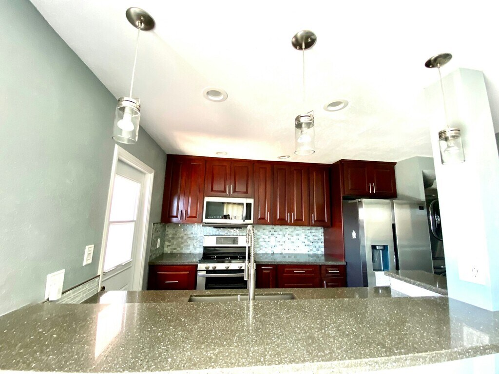 Great location in in Central Oahu in Waipio Gentry. 94-1194’Kipaa Place Unit 2D. Two story townhouse 3 bedroom 2 full baths 2 parking. Fully renovated with high end appliances, light fixtures, tile flooring downstairs. Full size washer and dryer with steam options. Huge fenced in Lanai with built in deck, built in shelves in Lanai storage, and artificial grass. Zero maintenance. Outside landscaping taken care of by the community. Deck is built right outside the living room which opens up to double energy efficient sliding doors expanding indoor space outside. Built in breakfast nook with custom table, custom hanging shelves, and office desk with plenty of storage. Tons of kitchen cabinets that go all the way up to the ceiling. Lots of counter space and wrap around bar countertop with USB plugs. Split Air conditioner and grand size living area. Glass enclosed shower downstairs with ceiling bluetooth speakers and blue night light exhaust fan. Ceiling fans in every room with A/C. and custom closets. Master bedroom has a built in makeup vanity and mirror. Pull down attic access door with endless storage space. Tall enough to stand up in. Dual level storage all cover with plywood. Attic fan helps suck the heat out of the home. So many features to this property with no wasted space when it was renovated. Don’t miss out on a clean and updated townhouse close to everything. Near Costco, Foodland, H3, Starsbucks and many other stores you can walk to. Bus stop is right outside the community on Waipio Ka Uka street. Apply Today. Available November 3rd. Call/text . Aloha.