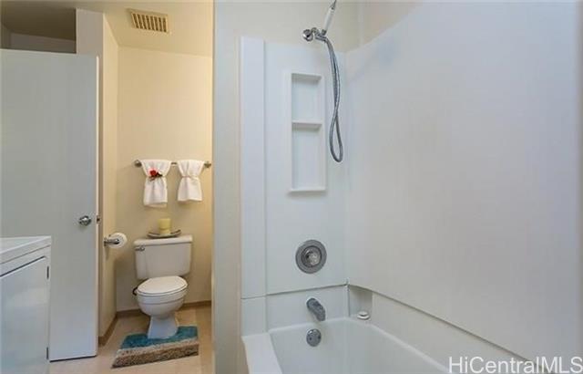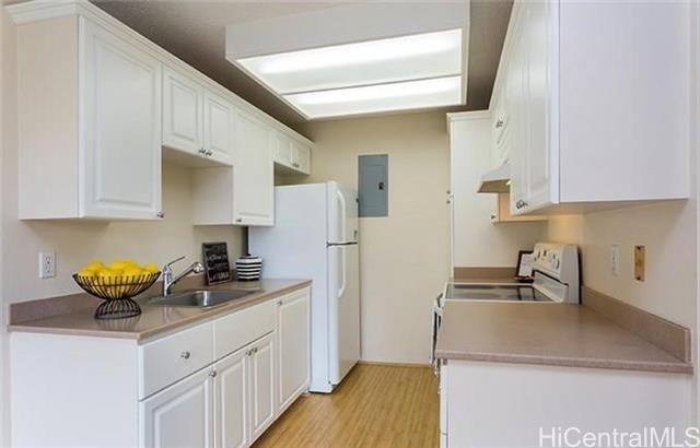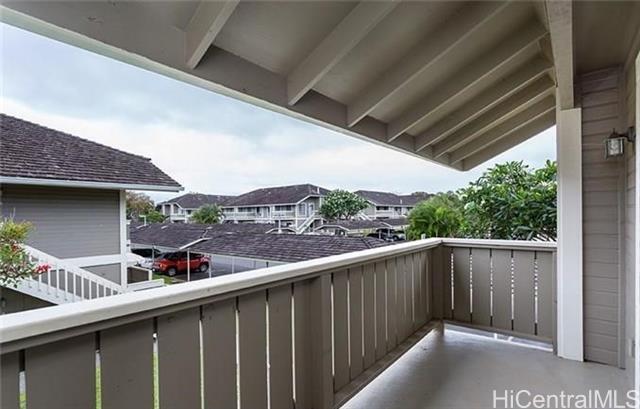 AVAILABLE JANUARY 1, 2026. PET FRIENDLY! Very well maintained, Upstairs, 2 bedroom, 1 bath, 1 covered parking stall (in front of home) in Royal Palm in Waipio. Very functional floor plan with spacious kitchen, living room, and a huge lanai with a storage locker. Full size washer and dryer. Dual bathroom entrances, one from the master bedroom and the other from the hallway. A Private community recreation area allows the space to entertain family and friends with a BBQ and pool. Royal Palm at Waipio is conveniently located close to Costco, restaurants, shops, parks, Hospital, walking/jogging paths, public transportation, and Freeway entrance/exits. In close proximity to Kaneolani Elementary School as well. Schedule your showing today!