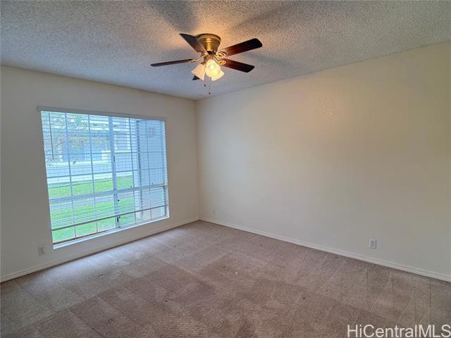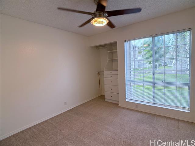 2 bedroom 1 bath ground floor townhouse at the Royal Palm in /Waipio. This unit has a nice fenced lanai area, an Updated bathroom vanity, carpet in bedrooms and laminate floors in living areas, full sized washer and dryer. Unit has 1 covered parking, guest parking and is close to shopping and restaurants. Sorry no smoking and no pets, renter's insurance required. Water, sewer and garbage included in rent. Tenant is responsible for gas, electric and internet/cable (optional) call/text Shannon Heaven or email at . Application fee is $20 per occupant over 18 years of age, and available online at
