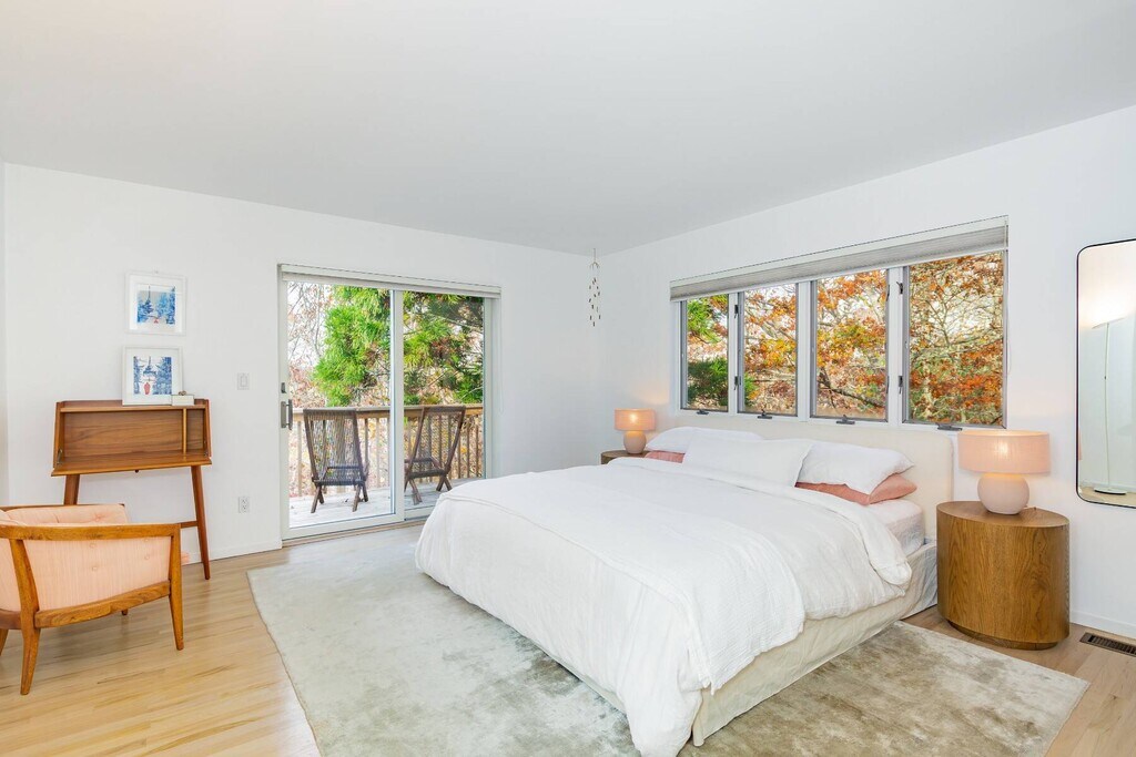 Cozy, boho-chic rental located just minutes from heart of East Hampton Village. This impeccably updated 3 BD 2FB rental provides the perfect backdrop for a memorable getaway. Updated kitchen with spacious dining area, great room with two-story soaring ceilings, 2 bedrooms on main floor (one with private deck and the other that offers access to pool deck). These bedrooms share a chic updated full bath. On the 2nd floor, you'll enjoy a superb primary suite with en-suite updated bath, walk-in closet and private porch. The 2nd floor also offers a spacious loft area, ideal for relaxing or sleeping! Outdoor, enjoy the private setting that includes a fenced rear yard with pool (not heated) and generous deck, gas grill and glimpses of the harbor from multiple decks. RP # 23-122 , exp. 2/3/25 Rental Terms: August - Labor Day: $28,000 July: $25,000 Memorial Day - Labor Day: $75,000 June: $20,000