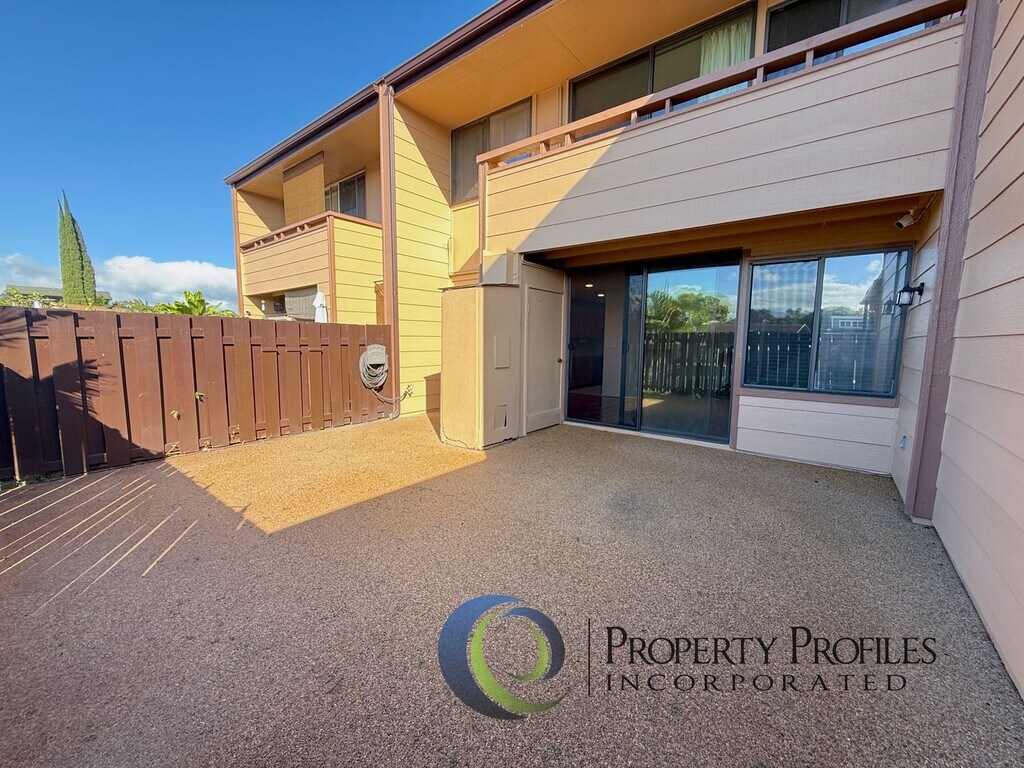Mililani Townhome with 4 bedrooms and 2.5 bathrooms coming available Early November! This townhome has fenced courtyards in the front and in the back for added space and storage. Unit comes with one carport and one open stall close to unit. Townhome has an upgraded kitchen and counters, laminate floors downstairs with carpet in bedrooms. Home has a split AC unit in the downstairs area and ceiling fans upstairs. Owner will consider a small dog with pet deposit. Tenant will have access to Mililani Town rec centers. Rent includes water, sewer, garbage and parking. Tenant is required to carry renter's insurance. $20 application fee per adult 18 years and older. To schedule a showing please contact Shannon Heaven at or . Applications are availabe at