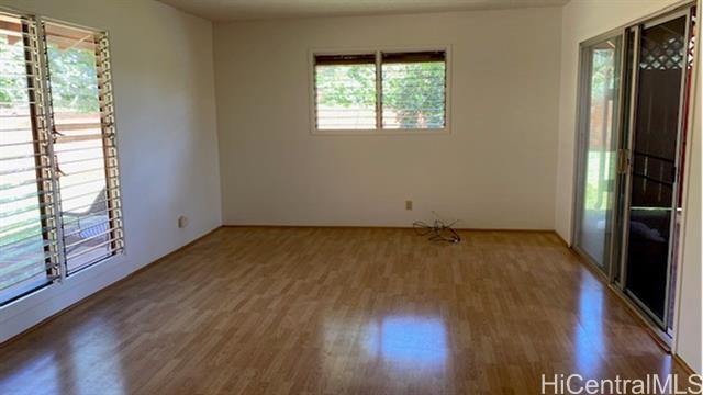 Property address: 94-396 Makalu Loop Mililani, HI 96789 Enjoy living in this 4-bedroom, 2 bath House with a 2-car carport and detached storage area/shed. This home consist of approximately 1900 square feet of living space. The land area is approximately 10,326 square feet. This home has solar panels, and two pets are welcome. Appliances for this home include a refrigerator, range, dishwasher, microwave, disposal, washer and dryer, split unit air conditioning is also installed for your comfort. This home has solar panels/battery. Big savings with electricity bills. Utilities for this home are at tenant’s expense. The WiFi is FREE as it is attached to the PV system. Yard service is included. Convenient location near post office, schools, parks, shopping center and recreation facilities. Easy access to major freeway and highway and, the location is near to military installations (Army, Navy and Air Force). Additional information: To qualify your income should be at least 2.5 times the rental rate and, your credit score should be at least 670 or higher.