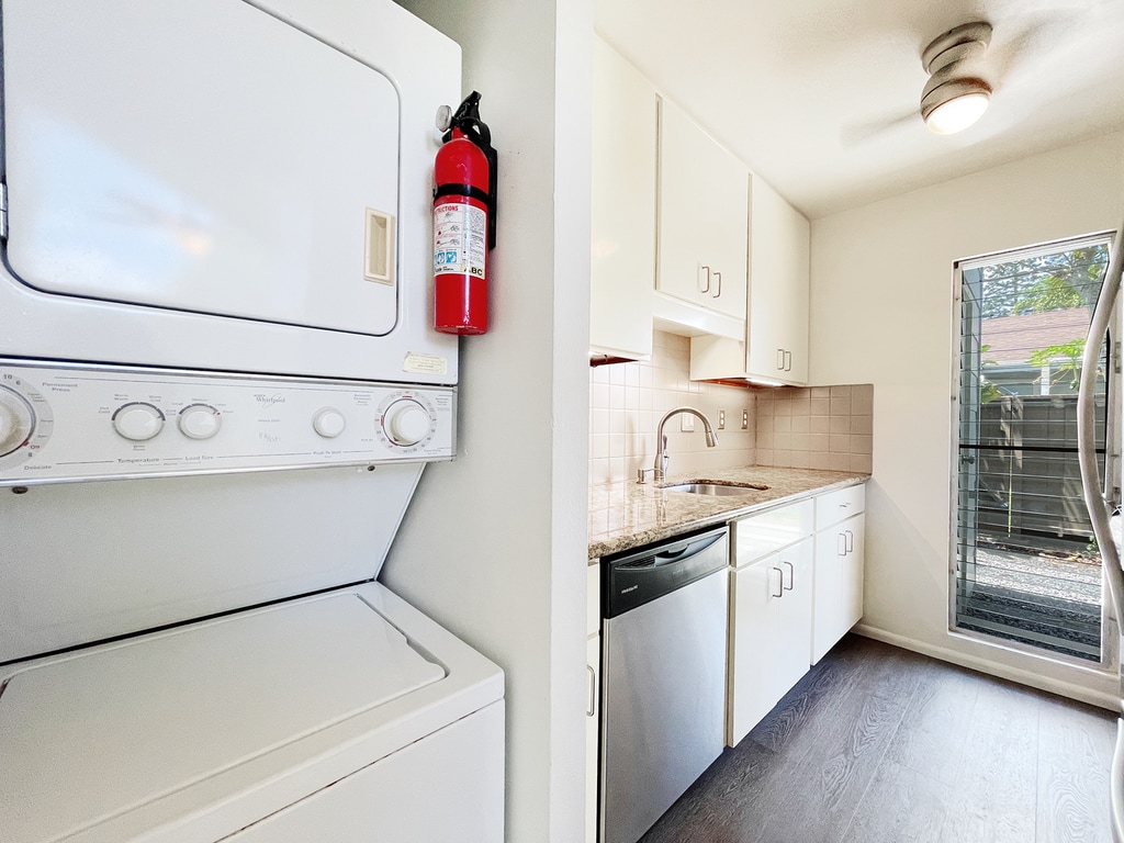 Enjoy the convenience of living in Mililani in this great 2/1 patio home. Let the breezes flow through 785 square feet of living space in this desirable home with no neighbors above or below you. Beautifully updated kitchen includes granite counters and stainless steel appliances. Wood laminate flooring throughout. This unit also includes 2 parking spaces right out front and washer/dryer. Lanikuhana Patio Homes are walking distance to Kuahelani Community Park and just 2 miles to Mililani Town Center which includes Petsmart, movie theatres, shopping, restaurants and more. A short 4 mile drive to Schofield Barracks, 3 miles to Wheeler Army Air Field, and 2 mile drive to Mililani Tech Park. With easy access to H-2 just 15 miles to Pearl Harbor/Hickam. Water and sewer included with monthly rent. Electricity is separate. Small pet negotiable (small dog under 40 lbs. or cat) with pet deposit (security deposit + $500). All prospective tenants above the age of 18 must fill out an application. Credit check required.