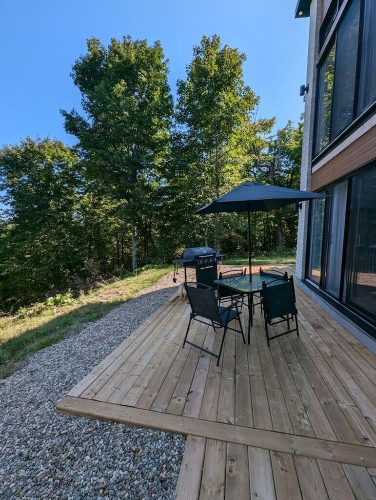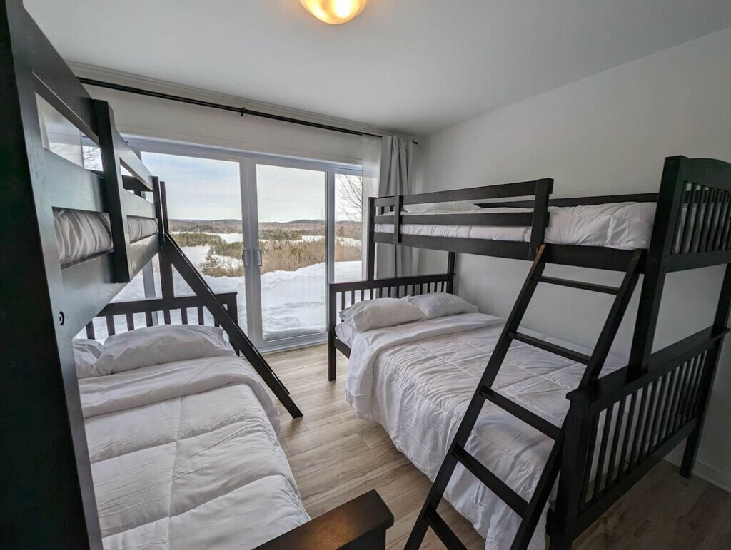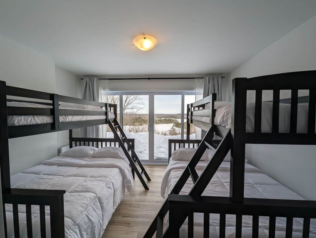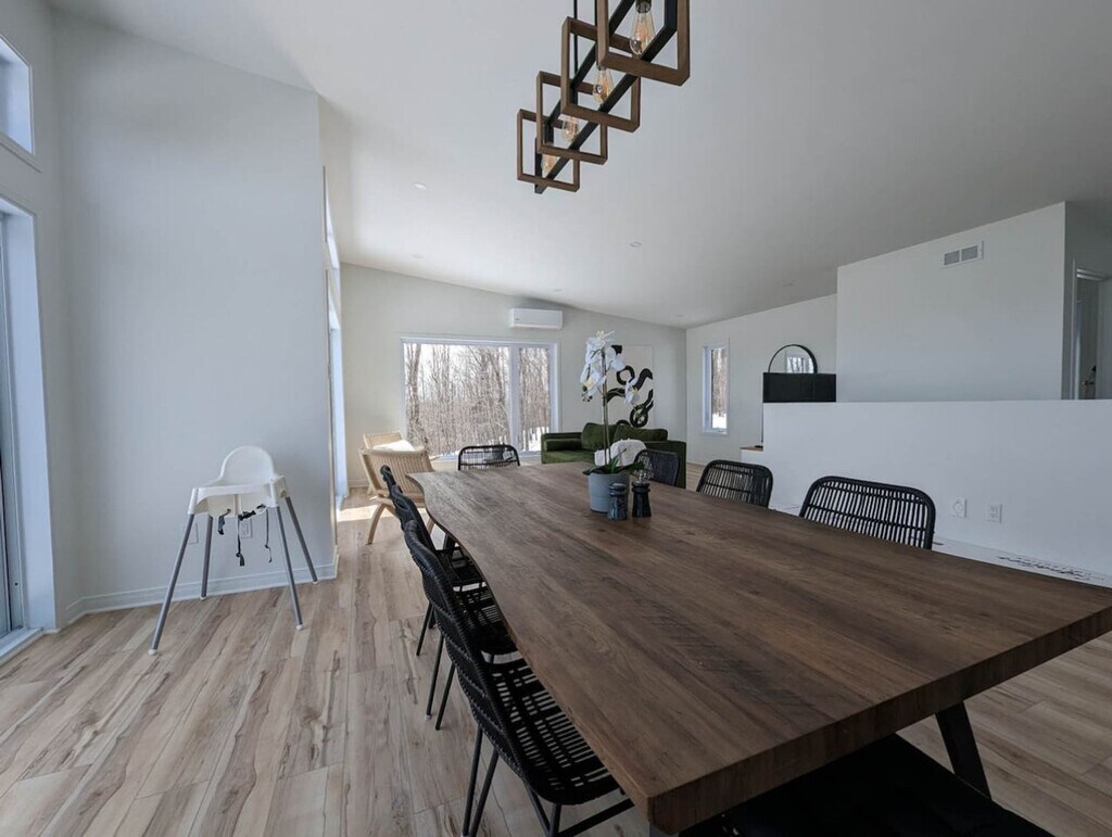 Feel at home in this stunning, brand new property built in 2023, boasting breathtaking views of the lake and surrounded by nature. This spacious, open-concept property comfortably sleeps up to 10 guests. The property features brand new appliances and furniture throughout, ensuring a comfortable and luxurious stay. Enjoy spending time in the large living area, complete with a games table that includes foosball, mini pool, ping pong, and other fun activities for all ages. Located just 45 minutes from the city, this property provides a convenient escape from the hustle and bustle, without being too far away. The surrounding nature and trees provide a beautiful, natural landscape. Pets are allowed but they must be declared and they are not allowed on the furniture. The house uses well water that hasn't been tested yet, so it is recommended to bring some water bottles until testing can ensure it is 100% potable. [SI]