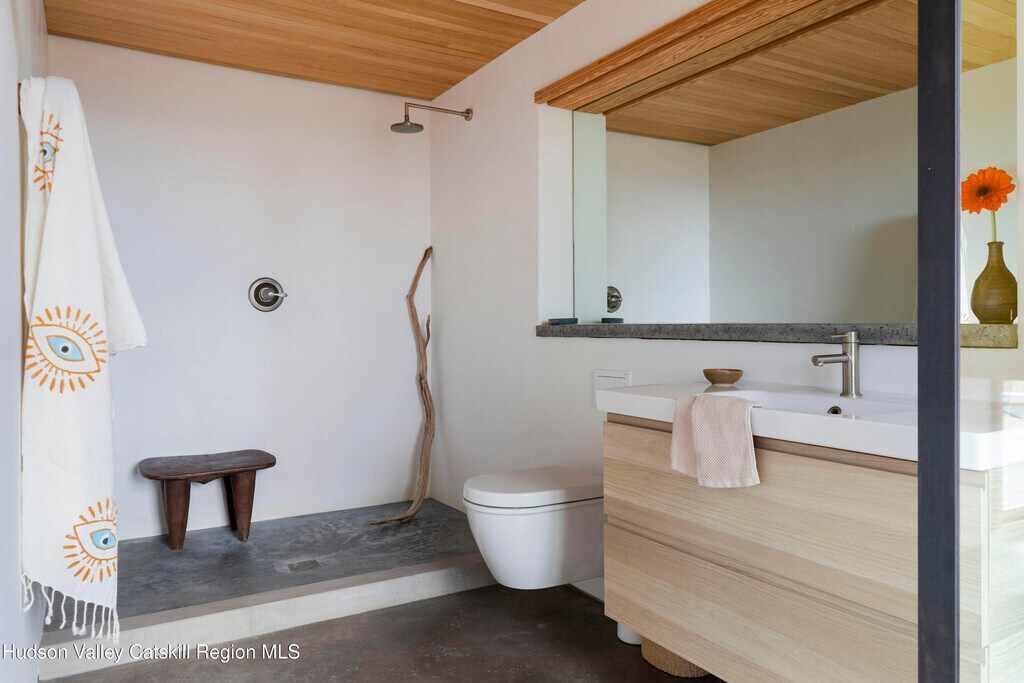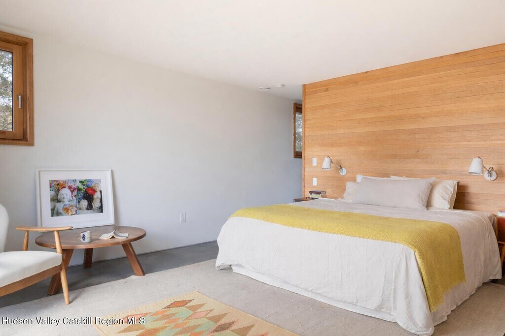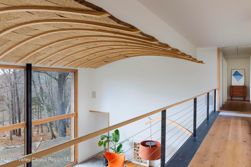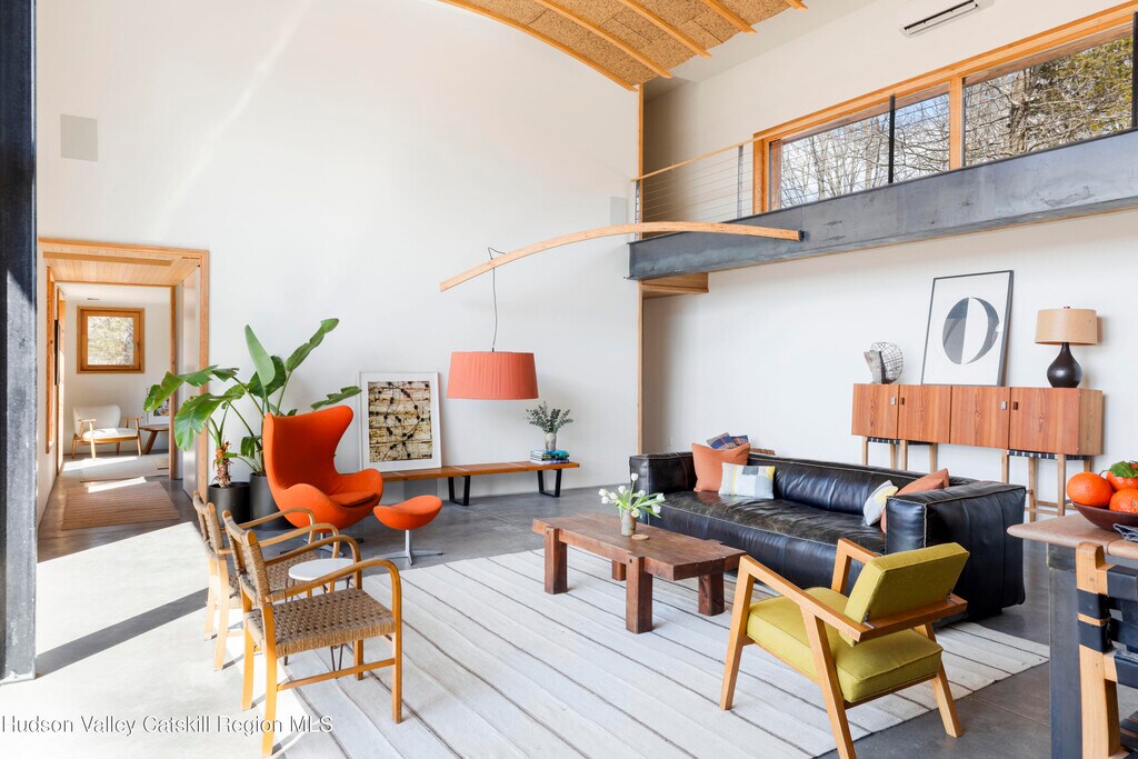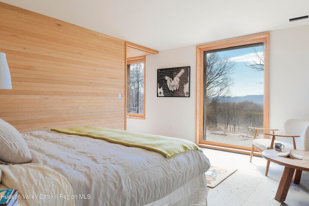 Widely published and thoughtfully realized - down a long winding drive,this distinctive residence offers a summer experience shaped by ease,architecture,and intention. Designed by North River Architecture,the certified Passive House reflects a thoughtful approach to living - where beauty,performance,and a relaxed - yet sophisticated sensibility - exist in quiet harmony. The home opens into a soaring,light-filled living space,where a dramatic wall of windows frame southern views of Mohonk Mountain. Light fills the interiors throughout the day,while evenings settle gently across the surrounding hills,creating an evolving dialogue between indoor living and the breathtaking views outdoors. Across three acres,the property unfolds with purpose. A swimming pond anchors the landscape,offering long,unhurried afternoons,while outdoor living spaces and an open-air shower lend themselves to easy summer rituals. The interior is curated yet comfortable,with two well-appointed private suites and two additional bedrooms great for kids and/or extended guest stays. At the heart of the home,a bold,modern kitchen is both functional and beautifully integrated - designed for gathering,cooking,and effortless entertaining. A dedicated office with a half bath - provides flexibility or a private work space when needed. This home offers a rare opportunity to spend the season immersed in design,nature,and a slower,more considered pace of living. Whether hosting friends for the weekend or enjoying quiet moments with family,the setting feels both expansive and grounded. This Passive House is minutes away from Minnewaska State Park,Mohonk Preserve,and the Vernooy Kills Waterfall area. The restaurant and spa at Inness; Ravenwood,Arrowood Farms,Westwind Orchard,Mill and Main,and Flying Goose Tavern which gives you plenty of great options to eat and drink within a few miles.