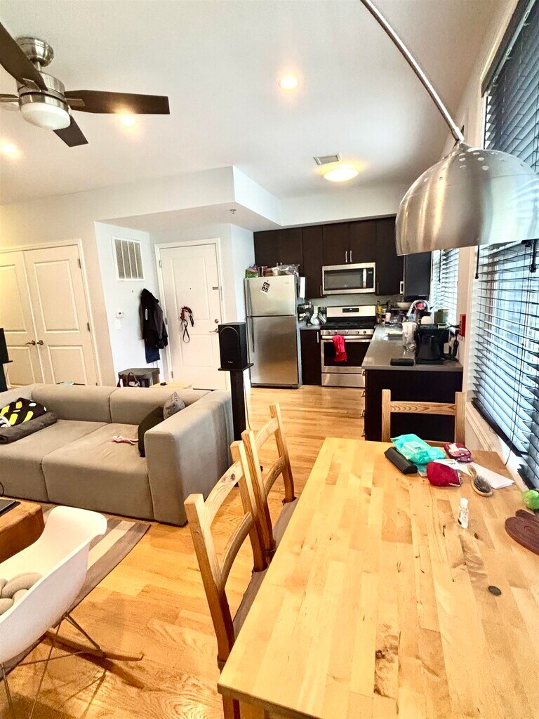 Located in the heart of downtown Hoboken this fantastic 2bed 1 bath is ideal for for city commuting renters seeking modern conveniences.The apartment is in a newer construction building and offers contemporary finishes,an open layout,and plenty of natural light. The two spacious bedrooms provide ample closet space, and the full bathroom is designed with clean,updated fixtures and a nice skylight. The open living and dinning make entertaining easy and create a warm inviting atmosphere year around.There are hardwood floors throughout, Central AC and heat and an in home washer-and dryer.