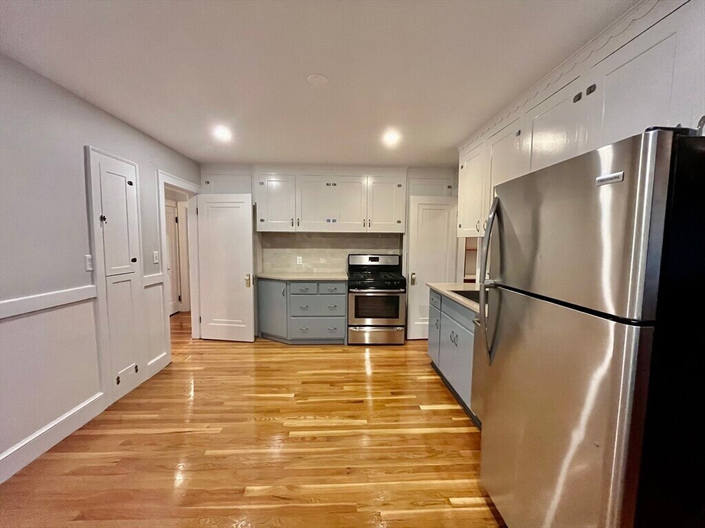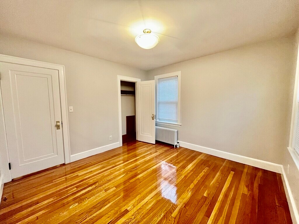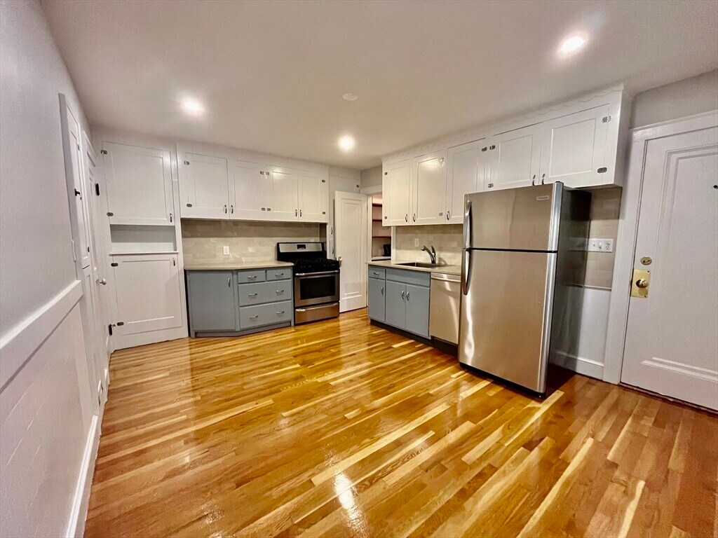 Available December 1st! Recently renovated two bedroom on desirable President's Hill. Beautifully refinished hardwood floors throughout. Bedrooms are evenly sized with adjacent linen closets,on either side of the nicely updated bathroom. The living room is grand with french doors from one of the bedrooms,large front-facing windows,and a walk-in cedar closet. Big eat-in-kitchen features stone countertops,stainless steel appliances (including dishwasher),and a pantry with in-unit,stacked laundry. Enclosed porch and driveway parking are just outside of the kitchen entrance. Private basement storage area. Great location near all that downtown Quincy offers- groceries,restaurants,shopping and a 5 minute walk to the redline Quincy Center T. No smoking. Cats are considerable for an additional $50/month. First month's rent and security deposit for move-in. MLS# 73452072