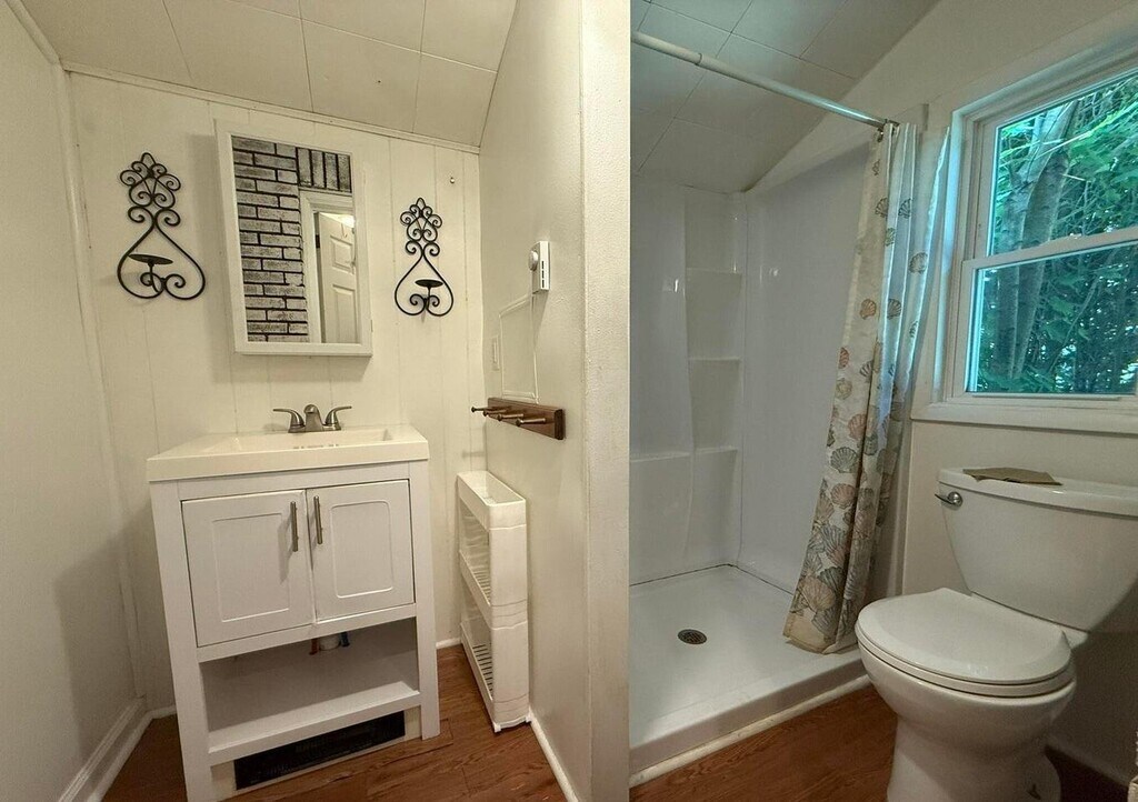 Check out this beautiful single family home! It features 3 bedrooms and 2 bathrooms. It's beautifully finished with wood and iron accents and a back porch with a view. Month to month lease available and no pets!