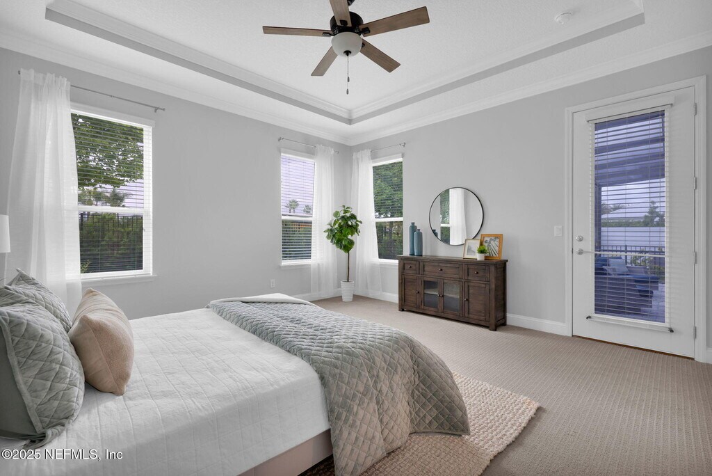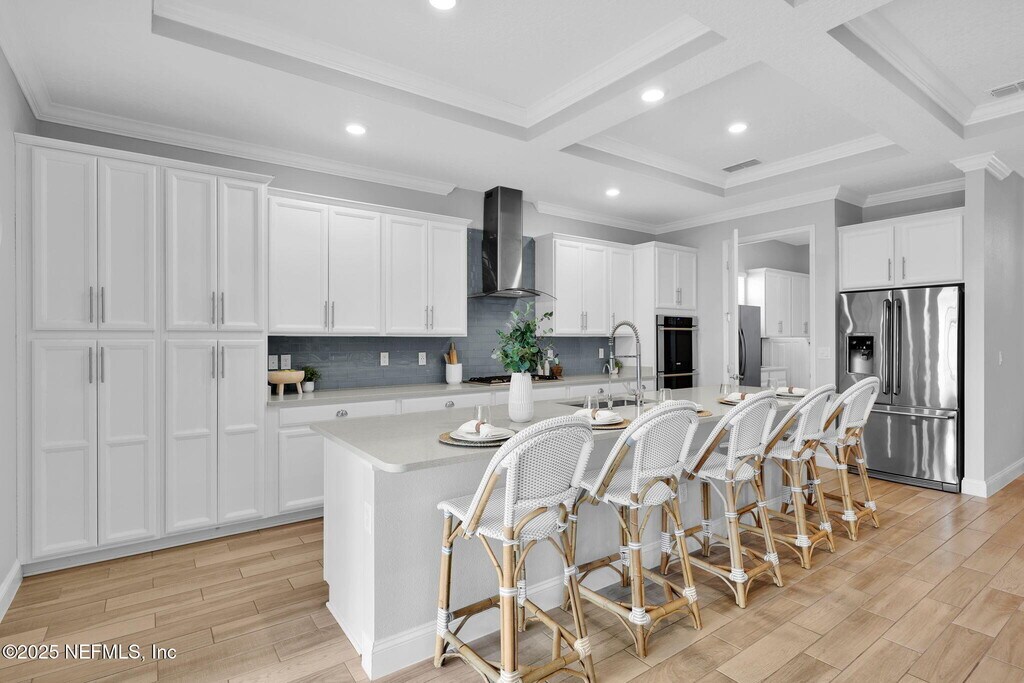 Why just vacation when you can live the lifestyle every single day? This beautifully upgraded one-story home is steps from the iconic Crystal Lagoon & Beachside High School,offering 3 bdrms,3 baths,& an open layout made for entertaining. The upgraded 10' ceilings create an expansive feel that sets this home apart. The kitchen stuns w/quartz counters,42'' cabinets,gas cooktop,butler's pantry,& a massive island. Wood-look ceramic tile flows through the main living areas,& the laundry room delivers with Electrolux washer/dryer,utility sink,+ built-ins. The owner's suite is a retreat of its own,with dual vanities,double shower heads,two walk-in closets,& a morning bar for coffee or wine. Outside,the fenced backyard opens to world-class amenities. Farmers markets,trivia nights,food trucks,live music,and a swim-up barBeachwalk isn't just a community,it's a lifestyle! A golf cart community. INCREDIBLE Beachwalk amenities include a 14-acre crystal lagoon,wa MLS# 2119706