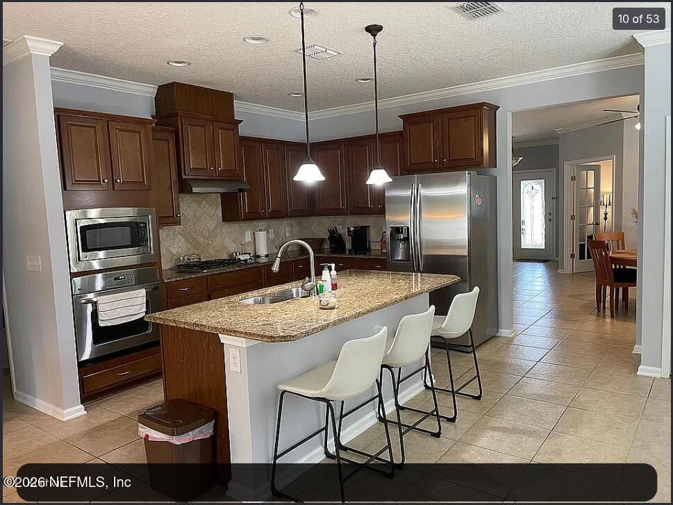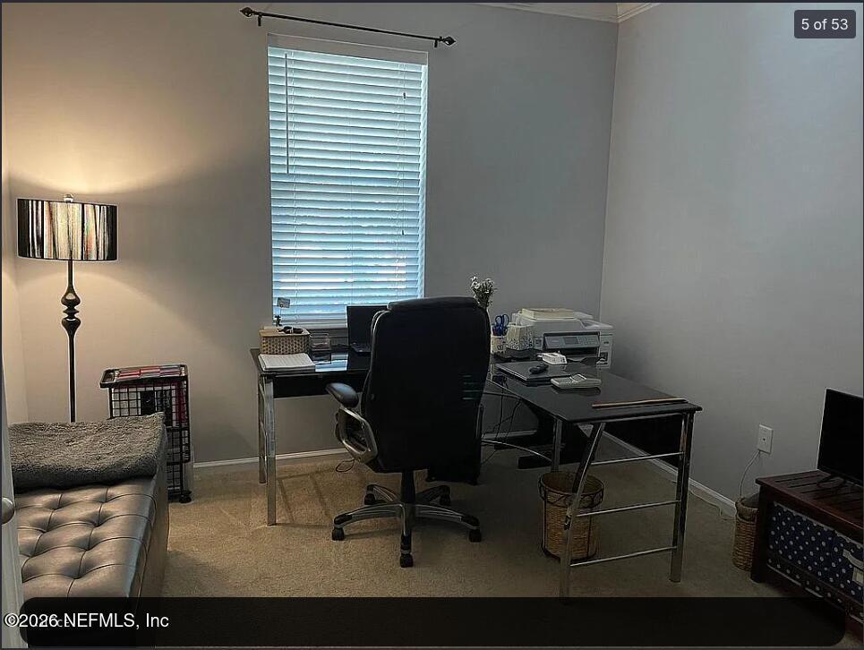 Beautiful 3-bedroom,2-bath single-story home with a dedicated office/study in the sought-after Greenleaf Village of Nocatee. Features an open floor plan,upgraded kitchen with prep island,stainless steel appliances,and stacked oven/microwave,plus crown molding and ceiling fans throughout. Tile in main areas and carpet in bedrooms. Spacious primary suite with walk-in closet. Enjoy a screened lanai and large fenced backyard. Washer/dryer included. Lawn care included and appliance warranty provided. Walk to Valley Ridge Academy (K-8). Enjoy Nocatee amenities including water parks,pools,fitness center,parks,and more. MLS# 2140847