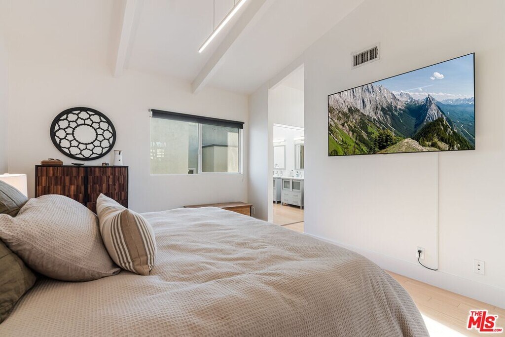 Set in an unbeatable Santa Monica location just 1 block from Montana Ave, this thoughtfully reimagined townhome blends clean design, natural light, and effortless coastal living. The multi-level residence offers 1,664 SF of living space with 2 bedrooms, 2.5 bathrooms, a top-floor bonus space, and a private two-car garage, designed for privacy, flow, and flexibility across multiple levels. The main living level is bright and open, anchored by soaring ceilings and expansive windows that fill the space with natural light. The kitchen is both sleek and functional, designed for daily living and entertaining, while the adjacent private patio extends the living space outdoors for relaxed dining or quiet mornings. Upstairs, two well-appointed bedroom suites are thoughtfully positioned on separate levels, creating a sense of privacy and retreat. On the top floor, a bonus flex space opens to its own balcony, ideal as a home office, guest area, or creative studio. All just steps from some of Santa Monica's best shops and dining and moments from the beach, this home offers a truly walkable coastal lifestyle. MLS# 26638743