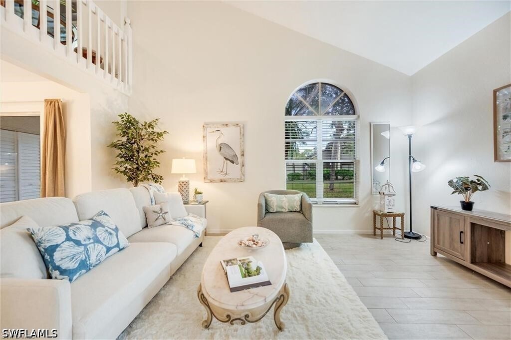 UNFURNISHED!! Mint Condition 2 story villa in Lely. One bedroom and bathroom downstairs,dining room,kitchen. and living room. Guest bedroom and den upstairs with second lanai/balcony. Vaulted ceilings and a ton of light throughout the home. Remodeled bathroom on the first floor. New flooring through out. Kitchen features stainless steel appliances,granite counter tops and a lot of cabinet space. 2 assigned parking spaces convenient to the unit. Available now!