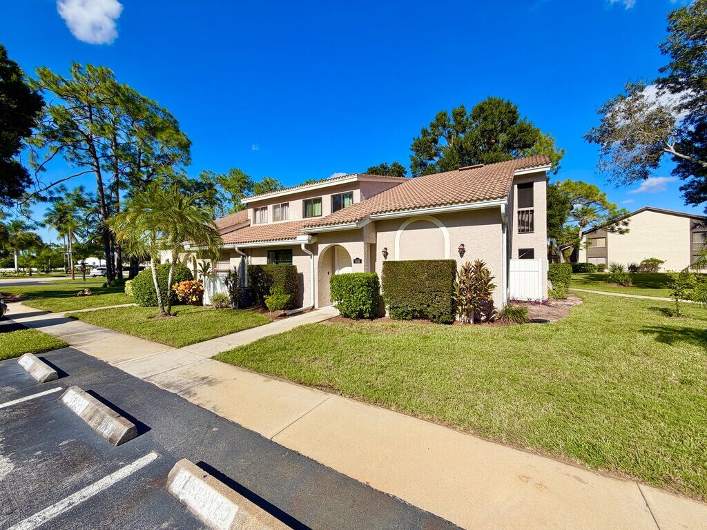 Welcome to this charming and well-maintained annual rental in the beautifully landscaped community of Village Green at Lely Country Club. This home offers 2 bedrooms, 2 bathrooms, and an upstairs loft that provides excellent versatility for a home office, media space, or additional sitting area. The living area features soaring ceilings that create an open and airy feel, along with a modern neutral color palette that complements many décor styles. The main level includes a designated dining area and wood-look porcelain tile flooring throughout the primary living spaces, while the bedrooms are finished with luxury vinyl plank flooring. The kitchen features wood cabinetry, granite counters, and stainless steel appliances, and a full-sized front-load washer and dryer are located inside the home for added convenience. The main level also offers an additional outdoor living space ideal for enjoying the peaceful surroundings. Upstairs, you will find another full bedroom and bathroom, along with a loft area that leads out to a private screened-in lanai that serves as a quiet retreat for morning coffee or evening relaxation. Village Green at Lely Country Club is a quaint and peaceful South Naples community offering open green spaces and a community pool. The home includes two assigned parking spaces conveniently located right in front. This desirable location just off Rattlesnake Hammock Road places you minutes from shopping, dining, I-75, downtown Naples, beaches, and many other popular destinations. *** Water, sewer, irrigation water, lawn maintenance, and exterior pest control are included in the rent. *** ** Small pet considered, with approval, and pet deposit. **