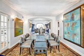 Discover a truly one-of-a-kind estate that masterfully blends elegance, character, and timeless architectural charm. Set on three expansive lots (150 x 120), this sophisticated 4 bedroom, 4 bathroom residence offers extraordinary space, stunning design features, and a layout that is as functional as it is captivating. The dramatic winding staircase leads to the second floor, where you’ll find two luxurious primary suites, warm wood floors, and beautiful natural light throughout. Downstairs, a third primary suite—currently used as a sitting room—adds flexibility for multigenerational living or guest comfort. The magnificent Art Deco fireplace, soaring vaulted ceilings, and grand living room create a striking impression from the moment you enter. Large windows fill every room with light and frame views of the lush, fenced backyard lined with privacy hedges. The home also features a formal dining room, Florida room, and mosaic clay tile flooring with decorative inserts, adding to its timeless appeal. A private guest quarters, complete with a bedroom and full bathroom, is seamlessly attached to the home. Additional highlights include a full-size 1-car garage with washer and dryer inside, ensuite bathrooms in every bedroom, and ample room to add a pool. Sophisticated, elegant, and truly unmatched—this estate is a masterpiece filled with charm and architectural distinction. MLS # A11920905