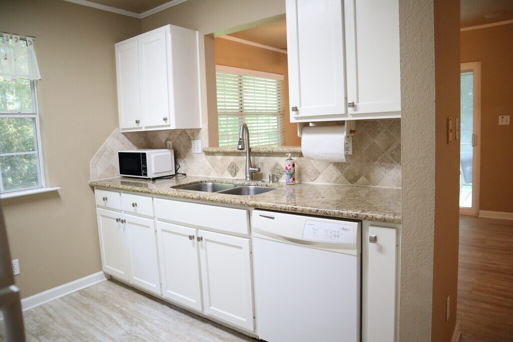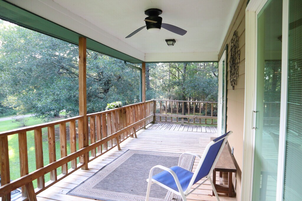 This unique 2/1 home is tucked away on 1.6 acres. The covered porch is perfect for drinking coffee or just enjoying your evening reading and relaxing. The kitchen has a refrigerator, dishwasher and granite countertops. There is a large walk-in pantry. The bathroom has granite countertops with double sinks. The master bedroom has a large walk-in closet and there is an indoor laundry area for convenience. Yard is huge and house feels like you are in a treehouse! Come take a look! Move in ready. $1200 security deposit. $55 application fee for everyone 18+ years old. No pets allowed. Listed by TC Properties and Property Management LLC. Lic#9015951
