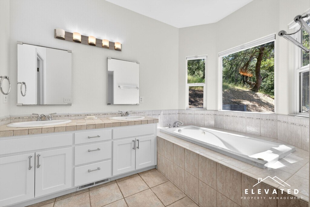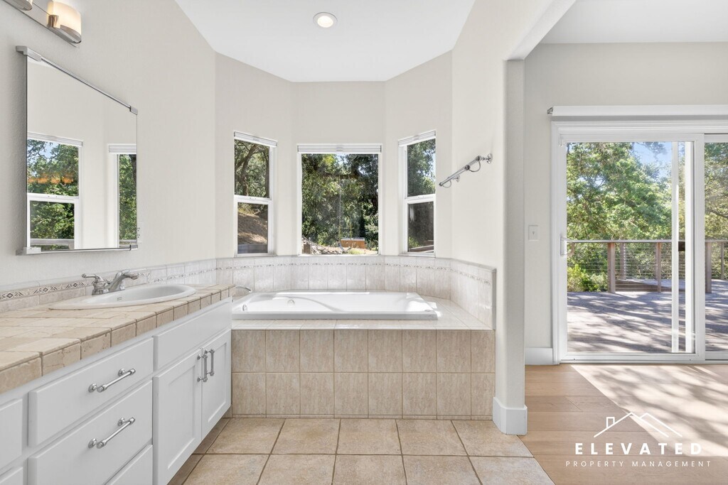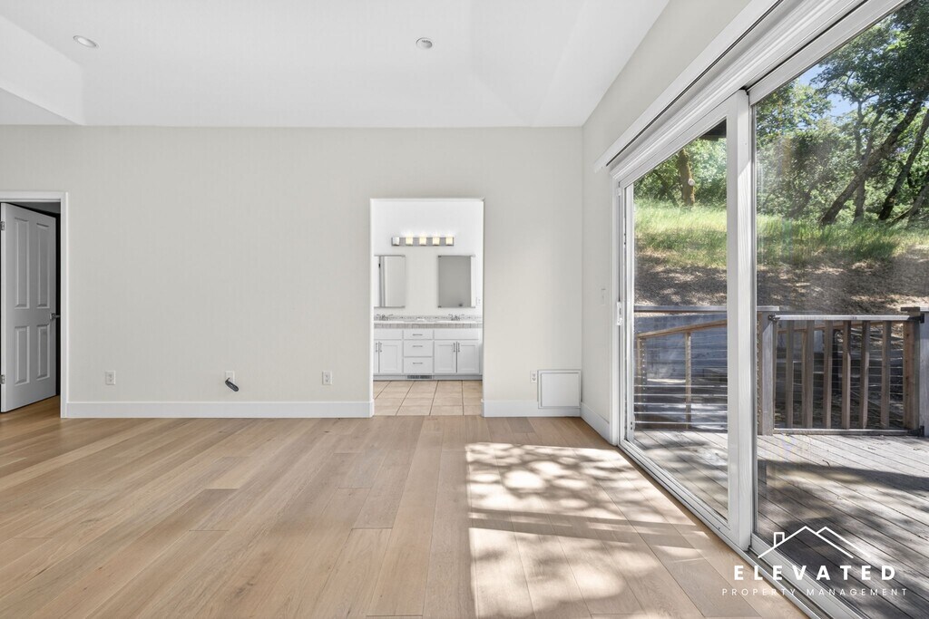 Perched along a private road in the sought-after Chalk Hill area of Healdsburg, this beautifully updated home offers a peaceful Wine Country lifestyle surrounded by mature oaks and scenic hillside views. Set on approximately 2.29 acres, the property combines privacy, natural beauty, and thoughtfully designed living spaces just minutes from local amenities. Upon entry, a split-level layout unfolds, with a short set of stairs leading up to the main living area and down to the lower level. The upper level opens to a bright and expansive formal living room and adjacent formal dining area, where vaulted ceilings and large windows frame the surrounding greenery and fill the home with natural light. European white oak hardwood floors run throughout, complemented by fresh interior paint, Hunter Douglas shades, and clean, modern finishes. A central fireplace anchors the living space, creating a comfortable setting for both everyday living and relaxed gatherings. The updated kitchen features ample cabinetry, generous counter space, stainless steel appliances, and a distinctive bay-style window over the sink. A movable island with a wood block countertop adds flexibility for prep and entertaining, while the bold yellow range adds a unique design element. The kitchen flows seamlessly into a separate family room, creating a functional and inviting layout. A sliding glass door off the family room leads to a large deck, offering an easy transition to outdoor living and entertaining. The primary suite offers a quiet retreat, with a private slider leading to the deck and a path that connects to the outdoor spa. The ensuite bathroom features dual sinks, a soaking jet tub with views of the surrounding landscape, and a step-in shower. A spacious walk-in closet with built-ins is located within the bedroom for added convenience. Two additional bedrooms, a full bathroom, and a laundry room are located on the main level. Downstairs, an additional bedroom and full bathroom are complemented by a versatile bonus space with a wet bar and private deck access, ideal for a studio, game room, or extended living area. A large storage closet provides additional functionality and space for organization. Outdoor living is a highlight, with multiple decks, usable yard space, and landscaped areas designed to take advantage of the natural setting. A large barn provides additional storage, and the attached two-car garage offers convenience with direct interior access. Located near Chalk Hill Estate Vineyards, Mayacama Golf Club, and Shiloh Ranch Regional Park, with easy access to Windsor, Healdsburg, and Sonoma County Airport, this property offers a balance of seclusion and accessibility. This is a rare opportunity to enjoy refined Wine Country living in a peaceful, private setting. Rental Details: - Rent: $7,500 - Security Deposit: $7,500 - Lease Term: 1 year lease - Application Fee: $49.99 per adult - Home is rented unfurnished - Pets are considered with an additional deposit - Tenant is responsible for PG&E and propane - Water, internet, landscaping services, and spa maintenance are included in rent Tenant Requirements: - Combined gross monthly income of at least 3x the monthly rent - Minimum FICO credit score of 700 - No evictions, bankruptcies, or collections - Positive rental history and verifiable landlord references from the past 5 years - Renters insurance required ($300,000 minimum liability) Available now. Contact us for a private showing. Elevated Property Management CA DRE #01786927