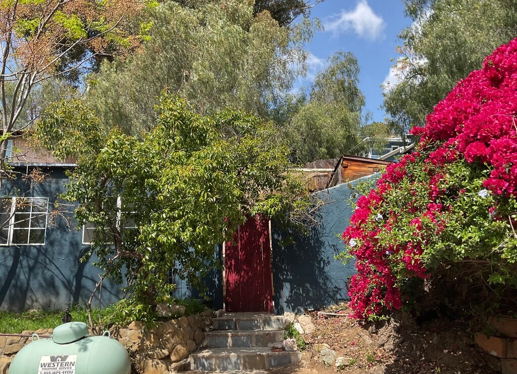 . Small, cute, cozy, studio guest house (200 square feet). Includes one room, about 10.5' x 10.5' and another area with shower, toilet and a small kitchen area with sink, shelves, refrigerator and microwave. Full of Character and old world charm. Tile floors throughout - Pets friendly and easy to maintain. Detached from the main house, on a separate level. A few steps up from the shared parking area lead to a small fenced front yard with sitting area. Sliding glass door in the back lead to an additional small, fenced, sitting area in the backyard. Additional small storage unit outside. Off street parking for one small to medium car. The parking area is shared with the main house. No on street parking available. Charming, quiet, and secluded, with lots of vegetation around. Beautiful rural area, with many hiking, biking, and riding trails, in the hills above Chatsworth. Very unique and peaceful neighborhood with private streets. Country feeling, yet only 4 miles drive from the 118 Freeway, and only 2 miles away from Topanga Canyon Boulevard, with many services and shopping options. No laundry facilities on site. Nearest laundromat - about 6 minutes drive. Rent $1395 + $149 utilities, including water, electricity, internet, propane and garbage. *** Good credit and rental history, and sufficient, verifiable income, are REQUIRED. *** Please do not enter the property, or approach the tenant. Showing by appointment only. People looking around: Chatsworth, West Hills, Woodland Hills, Canoga Park, Northridge, Porter Ranch, Simi Valley, Topanga, Reseda, Winnetka, Tarzana, Granada Hills, Mission Hills, North Hills, Van Nuys, Valley Village, Agoura, Agoura Hills, Calabasas, Encino, Moorpark, Thousand Oaks, Sherman Oaks, Westlake, Oak Park or Camarillo may want to check this one out. Thank you