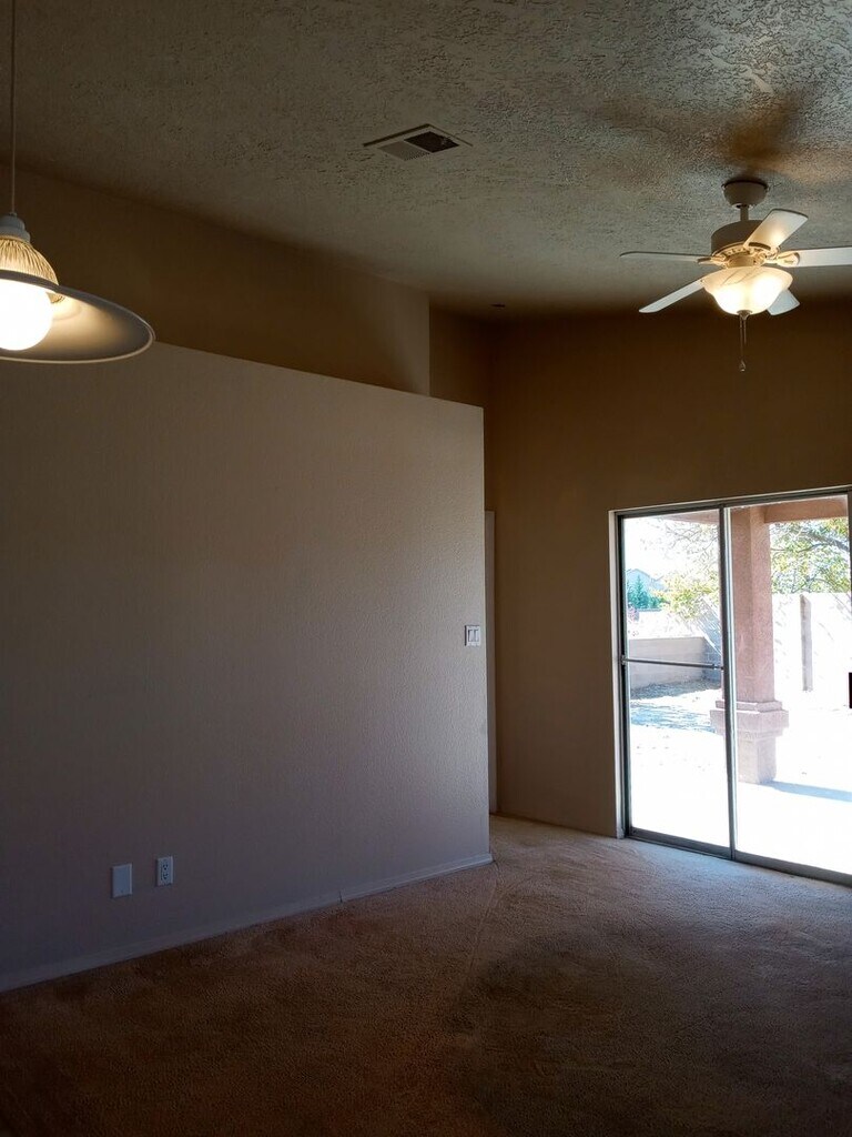 Welcome to the Affordable Ventana Cutie, a charming 4-bedroom, 2-bathroom home located in the desirable Ventana Ranch area of Albuquerque, NM. This home boasts a spacious layout with four generously sized bedrooms, perfect for comfortable living. The home is equipped with evaporative cooling to keep you cool during the warm summer months. The property also features a 2-car garage, providing ample space for parking and storage. The heart of the home is the living room, where you'll find a romantic gas fireplace, perfect for cozy evenings. The home also includes an inside laundry room for your convenience. Step outside to a huge fenced backyard, offering plenty of space for outdoor activities and entertaining. The Affordable Ventana Cutie is a perfect blend of comfort and functionality, waiting for you to make it your own. Call Del Mesa Properties to schedule your viewing at: . Or apply on our website: FEES DISCLOSURE: THE FEES THAT MAY BE CHARGED INCLUDE, SECURITY DEPOSIT, PET FEES, MONTHLY PET RENT, APPLICATION FEES, UTILITY FEES, LATE FEES, NSF FEES, LAST MONTH'S RENT, TERMINATION FEES, CREDIT CARD PROCESSING FEES, HOA VIOLATION FEES, HOLD OVER FEE.