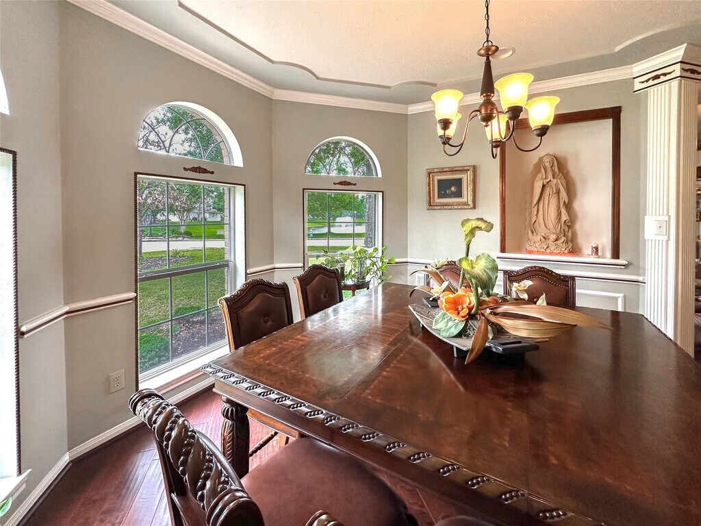 Welcome to Home!!!!!! 5 beds/ 4 complete bath great school district,close to the main Access HWY 249,45,99,Highway 8. Elegant and comfortable corner lot property with a beautiful triple paned front door and crown molding throughout the downstairs. Custom French doors leading into ding area. Peaceful water view from your dinning area,double paned windows on most windows. Jack and Jill style bedrooms upstairs,secret room upstairs for kids. MLS# 85268432