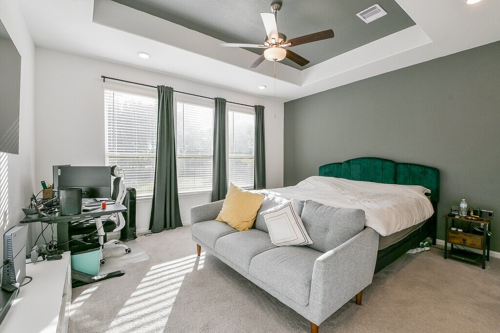 Welcome to 9405 Vista Falls Trace in Valley Ranch,a beautifully maintained 5-bedroom,3.5-bath home. This spacious two-story offers an open-concept layout with high ceilings,abundant natural light,and elegant finishes throughout. The gourmet kitchen features granite countertops,stainless steel appliances,and a large island that opens to the dining and living areas—ideal for family gatherings or entertaining First Floor also has attached private suite with it's own garage.. The primary suite includes a spa-like bath with dual sinks,a soaking tub,separate shower,and walk-in closet. Upstairs,a generous game room provides additional living space,while secondary bedrooms are well-sized with ample storage. Outside,enjoy a covered patio and fully fenced backyard perfect for relaxing or entertaining. Access to community parks,trails,shopping,and dining—this home blends comfort,style,and convenience in one desirable package. MLS# 27532909