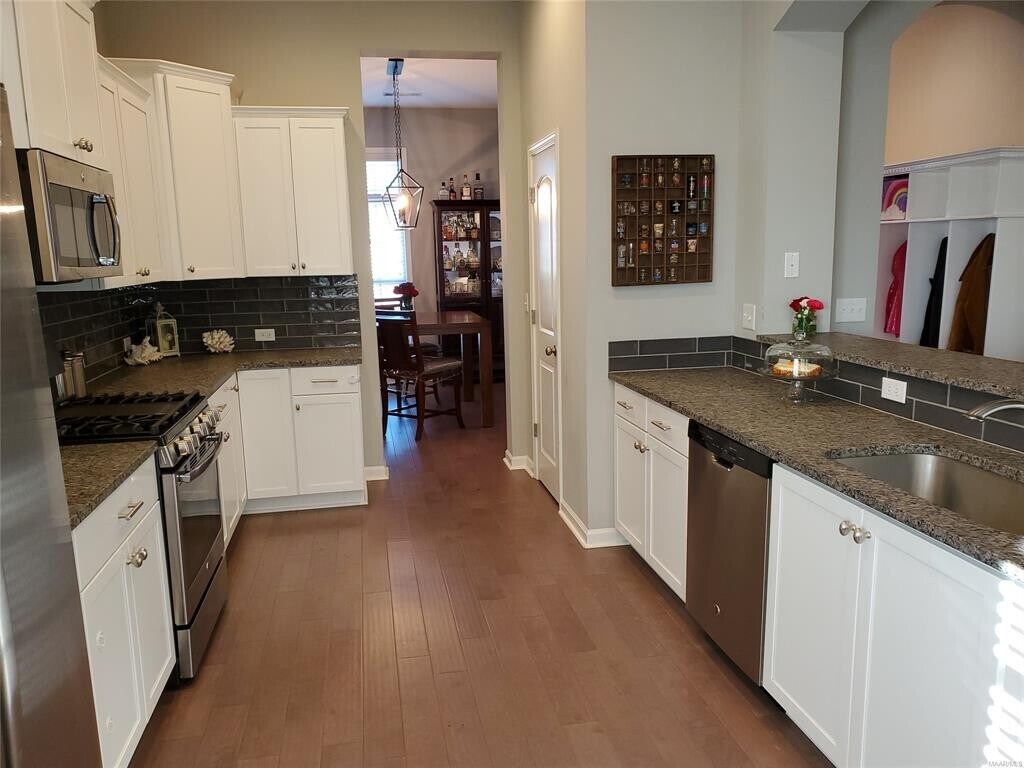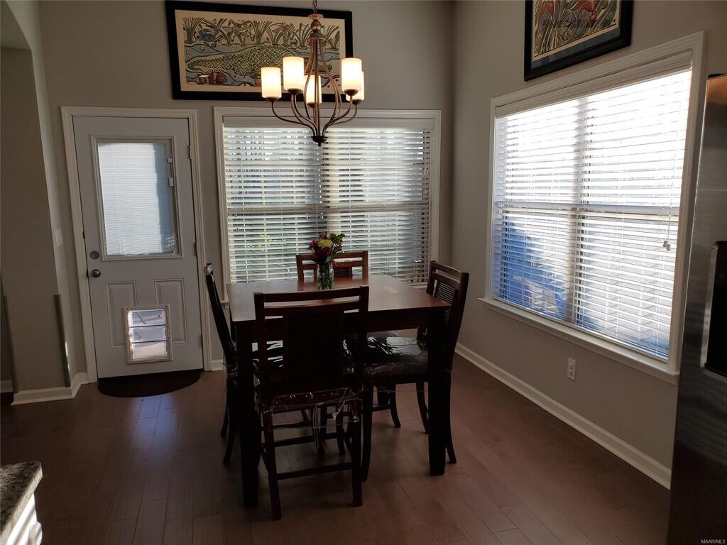 GREAT WOODLAND CREEK 4 BED 2.5 BATH IN PIKE ROAD / PIKE ROAD SCHOOLS!. Available July 7, 2026! Featuring hardwood floors through living areas, including kitchen, dining room and family room. The kitchen opens to the family room, has stainless steel appliances, beautiful cabinetry, granite counter tops and includes refrigerator, microwave, dishwasher and gas range! From the kitchen you can view the open family room and breakfast room and there are plenty of windows, patio door and French doors from the over sized family room that lead out the BIG covered screened-in porch area, which has screens that operate with a remote control and sections that can go up and down, which enable you to enjoy the backyard either open or screened in! Perfect for entertaining! Beautiful primary bedroom and bath, which is separate from the other three bedrooms. The large primary bedroom has a closet and another walk-in closet in the bath. The primary bath with separate jetted tub and shower, double vanity and granite counters. On the other side of home there is a hallway leading to other three nice size bedrooms, half bath and full bath. At the end of the hall is laundry room that can accommodate large washer and dryer and from there entry to the garage. What a grand place to call home and one of the most sought after and fastest growing communities in Pike Road, Woodland Creek, which has amenities like a beautiful clubhouse, swimming pool, playground and fitness center, just to name a few!