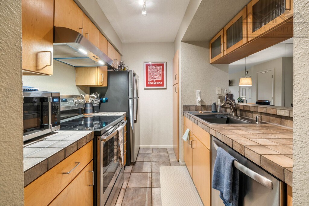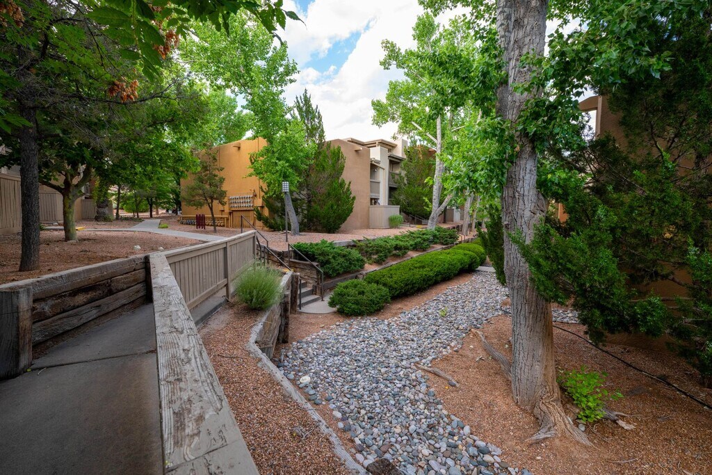 LEASE TODAY & GET 1 MONTH'S FREE RENT! Bright, stylish, UNFURNISHED second-floor condo located at The Reserve. The desirable and charming one-bedroom, one-bath features EXCEPTIONAL EAST MOUNTAIN VIEWS, an in-unit washer dryer, track lighting, floating shelves, and a mirrored west wall in the living room for additional light. Also included is a private deck, a storage closet on the balcony for extra convenience, evaporative cooling, forced air heat, and a mix of carpet and tile floors. Located in a premier gated condominium community with beautiful mature landscaping and community paths. Enjoy a year-round heated pool, hot tub, fitness center, and community room. Parking lot available. Only approximately 2.2 miles from the historic Santa Fe Plaza, easy access to entertainment, shopping, and dining. Fiorina Properties markets and leases the unit; ongoing management is by the owner. Water, sewer, and refuse are included in the rent. 12-month lease term preferred. Resident is responsible for payment of $200 fee for The Reserve Registration. Deposit equals one month's rent. Cats are not allowed. A maximum of two small dogs (each under 25 pounds at maturity) are considered with owner approval with a $250.00 non-refundable pet fee per pet. All pets must comply with The Reserve’s pet restrictions. Smoking of any kind is not allowed. The Reserve grounds are officially nonsmoking areas. No smoking allowed inside condos, on patios or balconies or in the breezeways, parking lots, and other public spaces. However, unit owners at The Reserve may smoke. No virtual tours. Property must be viewed in person prior to applying. Any application received prior to viewing the property will not be considered or processed. A $60 application fee and a minimum credit score of 620 is required. Please email Fiorina Properties to schedule a showing and include your phone number and email address. Brokerage: Fiorina Properties, LLC Qualifying Broker: Riesha Fiorina