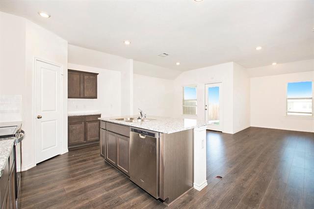 Beautifully designed 4-bedroom, 2-bath residence offering comfort, style, and convenience. The open-concept floor plan features a bright kitchen with granite countertops, stainless-steel appliances, subway tile backsplash, and a large island perfect for meal prep or casual dining. The primary suite includes a private bathroom with dual sinks, a large vanity, and a walk-in shower. Three additional bedrooms provide plenty of space for family, guests, or a home office setup. Enjoy durable wood-style flooring in the main living areas, plush carpet in the bedrooms, and modern neutral tones throughout. The home’s layout offers great flow and natural light, creating an inviting atmosphere for everyday living. Located in a quiet, family-friendly community near schools, shopping, and major highways, this home combines modern upgrades with a convenient location.