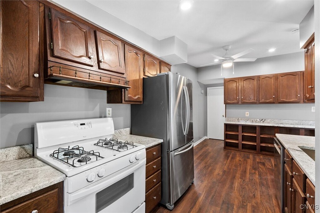 This fully renovated,move-in ready 4-bedroom,2.5-bath home offers far more space than it appears from the outside and includes a private backyard with a brand-new composite deck. A significant amount of work has been completed throughout the home to ensure it is solid,clean,and complete,not just cosmetically updated. Interior improvements include newer flooring throughout both levels,fresh paint on all walls and ceilings,updated lighting and fixtures,and new smoke and carbon monoxide detectors. The kitchen features beautiful granite countertops with a matching granite backsplash,a stainless steel sink,an updated faucet,and some stainless steel appliances. All 2.5 bathrooms were completely gutted and fully renovated,with the lower-level half bath reconfigured for improved functionality. The lower level also includes a separate laundry room with washer and dryer and additional finished,flexible space. Exterior improvements were completed with long-term protection in mind and include professional grading to direct water away from the home,gutters installed around the property,foundation parging and sealing,driveway and stair sealing,and extensive yard cleanup. Outdoor living is enhanced by a new low-maintenance composite deck,accessible from two new sliding glass doors and newly installed stairs that provide easy access between the deck and the backyard. Additional features include central air conditioning and a one-car garage. Available now and ready for immediate occupancy.