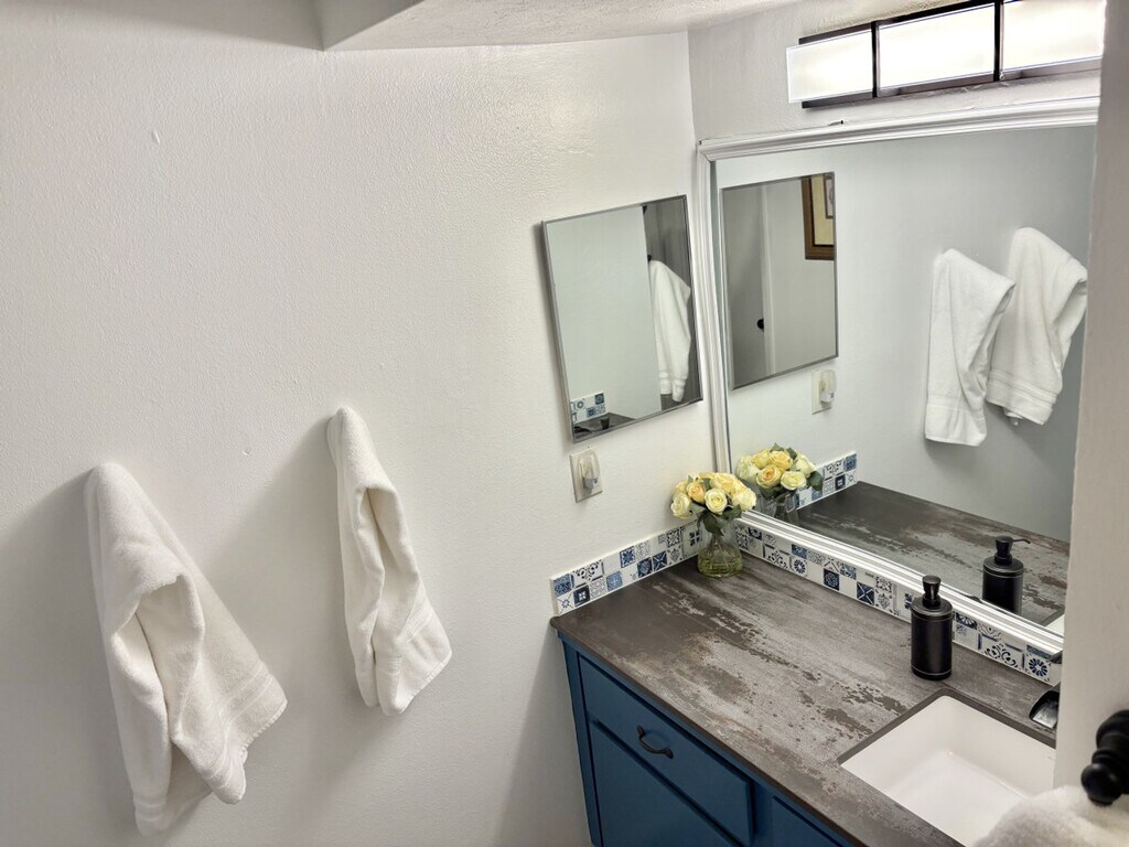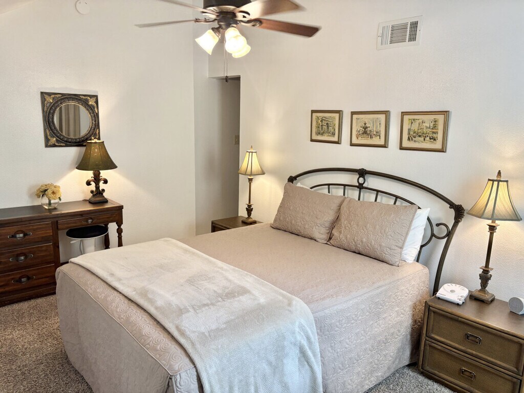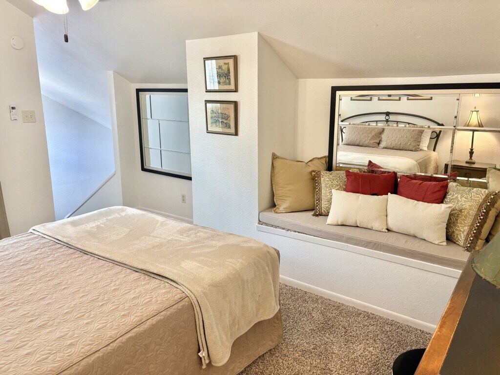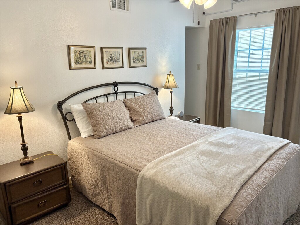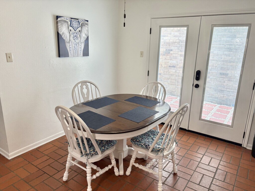Feel at home in this spacious 2-bedroom townhome, located just 5 minutes from Texas A&M and Kyle Field. This stylish retreat blends cozy charm with modern amenities, creating the perfect backdrop for football weekends, Ring Day celebrations, or graduation memories. The newly renovated kitchen is fully equipped with a Keurig, traditional coffee pot, bakeware, pots and pans, and a blender for margaritas. The dining table seats six, perfect for shared meals or game-day snacks. The spacious living area features comfortable seating and a smart TV. Board games, luggage racks, and ample closet space provide convenience and comfort. Rear carport and street parking are available for easy access. Top Golf Range and Legends Event Center are nearby, and Historic Downtown Bryan is a short drive away, offering live music, unique shops, and festivals. Lake Bryan is also nearby for hiking, biking, and lakeside dining at Cadillac Ranch. The surrounding area offers dining and entertainment options, including Porters Steakhouse, Chimy’s, CAVA, Hopdoddy Burgers, Mo’s Irish Pub, The Canteen, and Star Cinema Grill. Smoking is not allowed in or on the property, and evidence of smoking will result in a $400 charge to deodorize the home. Do not turn the thermostat below 69 during the summer, as the unit could freeze, and the guest will be charged the cost to repair the heating/cooling system. When leaving in the summer, turn the thermostat up to 80 degrees. When leaving in the winter, turn the thermostat down to 60 degrees. People other than those accounted for in the booking agreement may not stay overnight on the property; unauthorized guests will incur a $300 fee plus $25 per person. Villa Navidad is not pet friendly, and if a pet is found on the property without prior approval, a pet fee will be charged, and the booking may be terminated. All trash must be bagged when placed in the dumpster, or a $20 charge will be applied. Includes a desk for remote work in the loft bedroom. [SI]