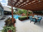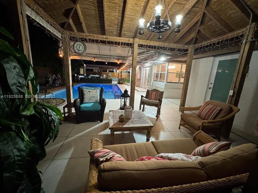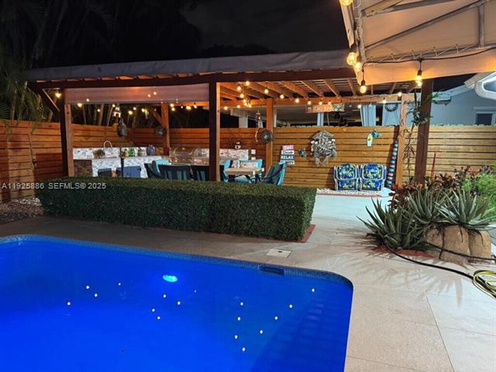 Courtesy of Capital Homes Inc Beautiful modern 3-bedroom, 2-bathroom fully furnished home for rent featuring an open floor plan and a private patio with pool, pergola, and outdoor kitchen—perfect for entertaining family and friends. The home offers stylish finishes and comfortable living spaces throughout. Available for move-in on January 15, 2026.