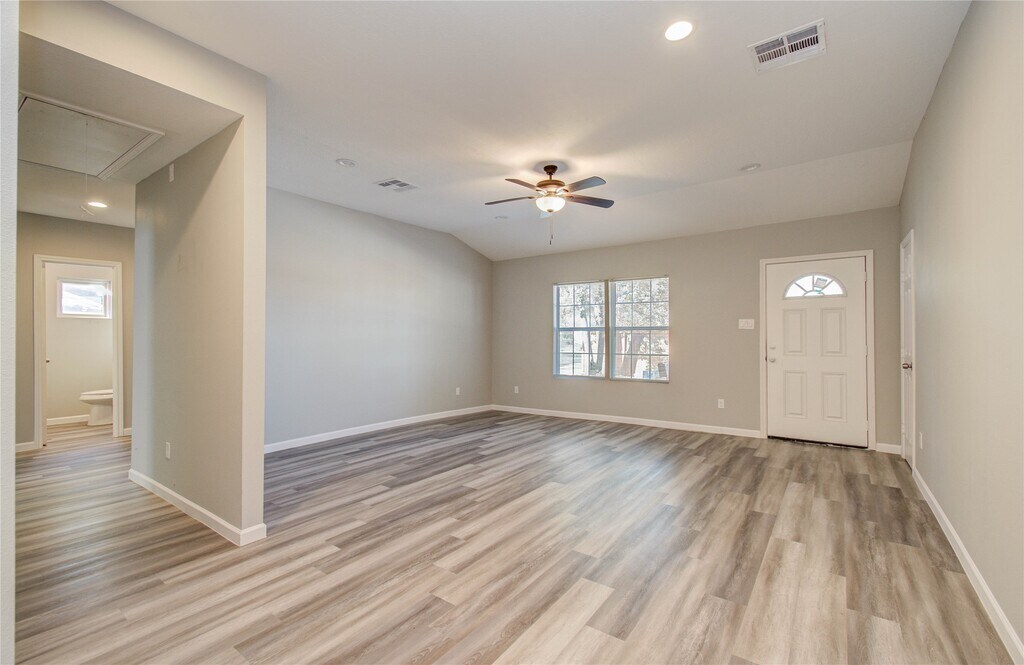 Charming 4-bed-2-bath home in the subdivision of Barclay Place for rent features a welcoming front porch. It has a spacious front yard and a paved driveway. This spacious living area features sleek wood-like flooring,neutral walls,recessed lighting,and a ceiling fan. It seamlessly connects to a bright kitchen/dining with white cabinets and subway tile backsplash,creating a modern,open-concept feel. The kitchen includes an electric stove,microwave/vent,and dishwasher. All bedrooms have carpet flooring. Primary bedroom with bathroom that has double sinks and a shower/tub. The secondary bathroom has a tub/shower as well. Utility room with electric washer and dryer connections,located in the home. The spacious backyard is fully fenced. The back porch offers a serene outdoor space for relaxation or entertainment. Make your appointment to view today! MLS# 11864404