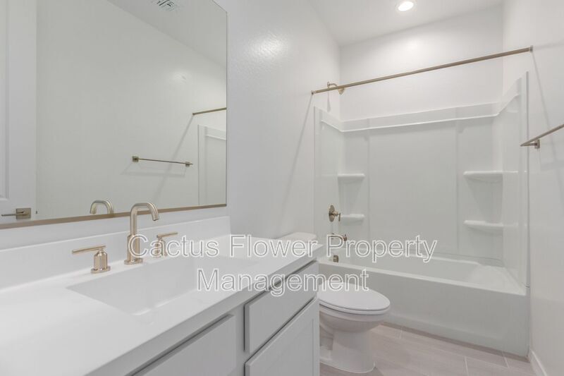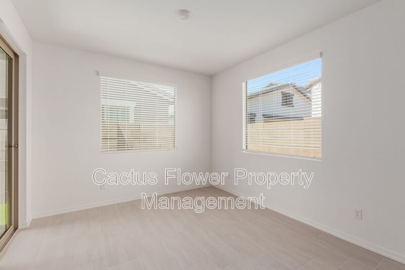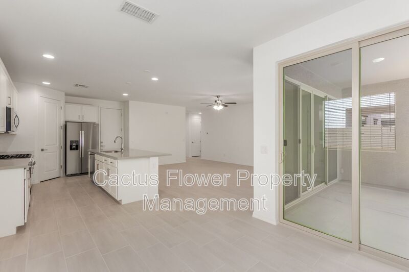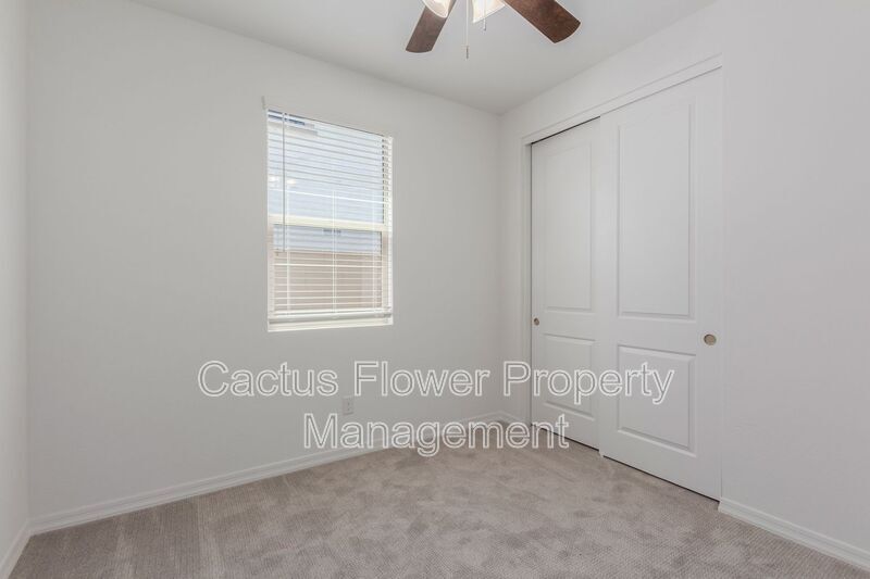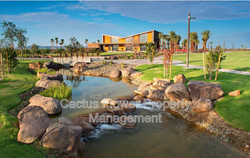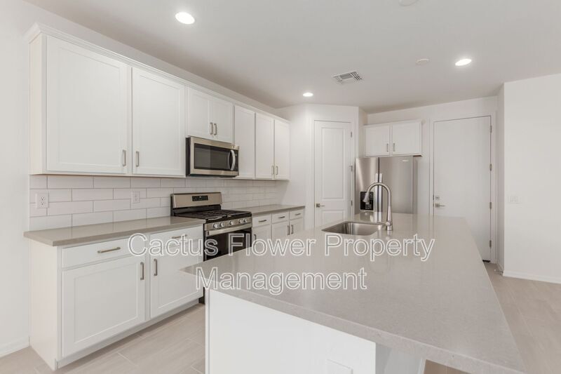 Be the first to live in this brand-new home located in the highly desirable Eastmark community, which boasts an array of amenities including a heated community pool & SPA, a clubhouse with engaging programs, a rec room, skate park. This exquisite 3-bedroom, 2-bath single-level home features a 2-car garage, tasteful design elements, and modern amenities. All appliances, including the washer and dryer, are brand new. The home offers luxury plank tile flooring throughout, with plush carpeting in the bedrooms. Its functional, spacious open floor plan is filled with natural light. A large 4-panel sliding door opens the expansive living space to the covered patio, and the dining area also has a sliding door leading to the patio. The open-plan kitchen is equipped with a large wet island, breakfast bar seating, modern quartz countertops with a tile backsplash, ample cabinet space, stainless steel appliances, and a gas range. The split floor plan ensures privacy. The spacious master bedroom features an en-suite bathroom with a large walk-in shower, double vanity, private toilet room, and a generous walk-in closet. Front yard maintenance is included. The small, low-maintenance backyard, now featuring turf, is perfect for entertaining. You won't be disappointed when you see this home! Conveniently located near the San Tan 202 freeway and Williams Gateway Airport, and close to top schools such as Basis Mesa & Gateway Polytechnic Academy.