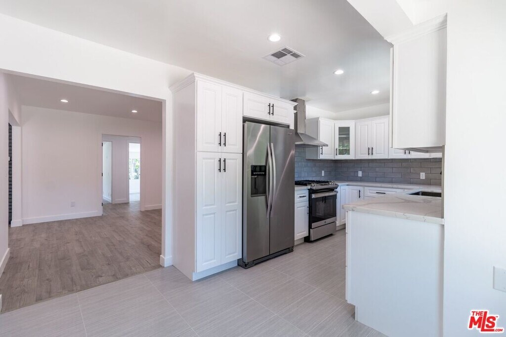 A prime Northridge beauty is now for lease! This is a 5-bedroom and 3-bathroom home with 2,303-SqFt of living space. Beautifully landscaped property that has a long driveway and an attached 2-car garage. The home features a spacious open floorplan with laminate flooring, baseboard moldings, recessed lighting, storage space and more. There is a formal living room with a fireplace, a family room, and a dining room. The stunning kitchen has sleek quartz countertops, stainless steel appliances, as well as white cabinets and a decorative backsplash. Home has a laundry area. Bathrooms are modern and have updated fixtures. Bedrooms are well-lit with natural lighting. Each room has a large, mirrored closet. 3 bedrooms have a barn sliding door closet. The primary has a walk-in closet with a sliding barn door, plus a private en-suite bathroom. The yard is just begging to have company! Outside you have a huge backyard offering privacy, lush greenery and a nice-sized patio that is perfect for adding outdoor seating. Great location! Close to schools, dining options, Target, Matador Bowl, Dearborn Park and more! MLS# 25625735