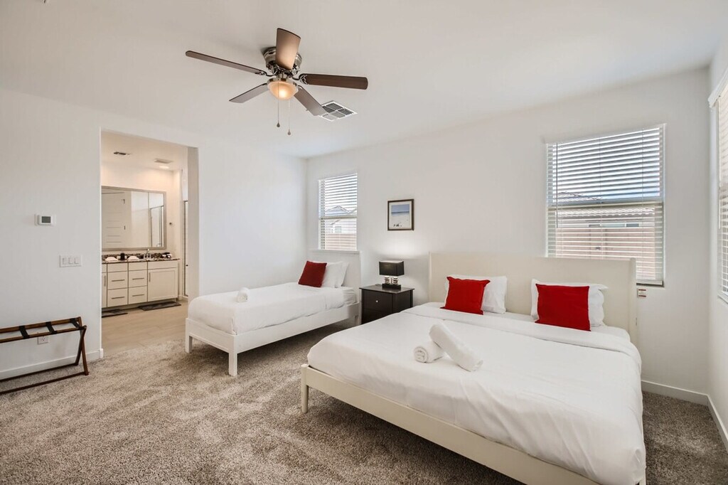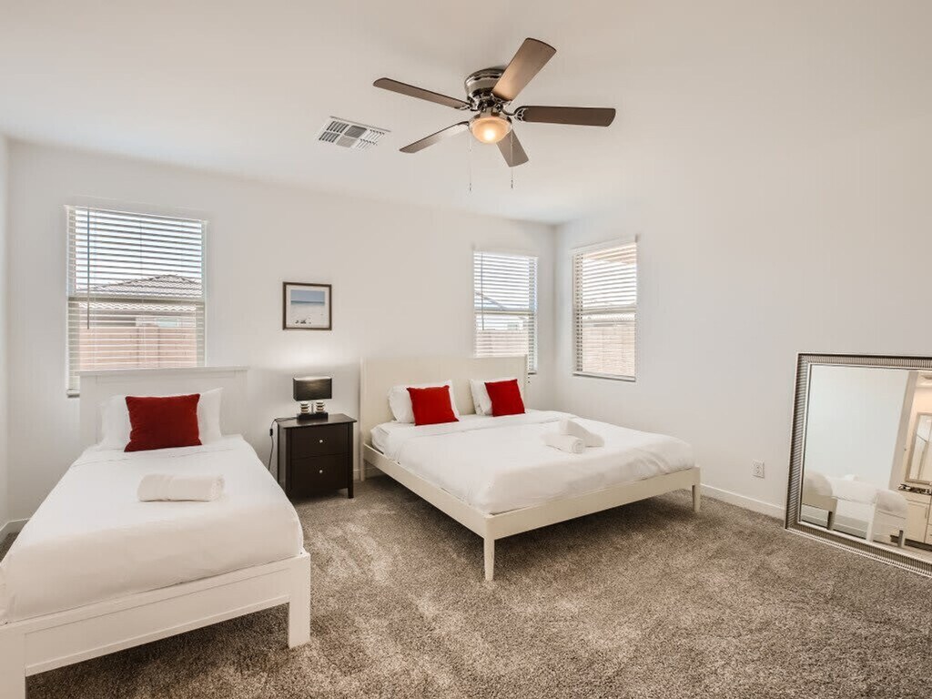 Feel at home in this 2000 sqft gem in Tolleson, AZ, featuring 5 bedrooms and 3 bathrooms. This home includes in-unit laundry, a full kitchen equipped with everything you need, and smart HDTVs in 4 of the 5 bedrooms and the living room. Enjoy fast Wi-Fi and plush bedding. The private backyard offers a ping pong table, dining, and lounge seating. Also provided are extra linens, comforters, pillows, a coffee maker, toaster, blender, and microwave. Up to 2 pets are allowed for a fee of $199 per stay. Indoor garage parking is available for 2 vehicles, plus driveway parking for 1 more. A pack-n-play, stroller, and high chair are also available. Located near 95th Ave & Lower Buckeye, this home is just 15 minutes from Phoenix and Scottsdale. It is also near Sunset Farms by Lennar Homes in Tolleson, 6.1 miles from Avondale, 15 miles from Downtown Phoenix, and 20 miles from Scottsdale. The closest airports are Phoenix Goodyear Airport (6 miles), Luke Air Force Base (10 miles), and Phoenix Sky Harbor International Airport (13 miles). Quiet hours are between 10 PM and 8 AM. Evidence of smoking of any kind will result in a minimum charge of $500. Tampering with smoke detectors is illegal and will also result in a minimum charge of $500. If the maximum number of guests is exceeded, there will be a charge of $300 per extra person per day. [SI]
