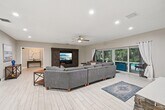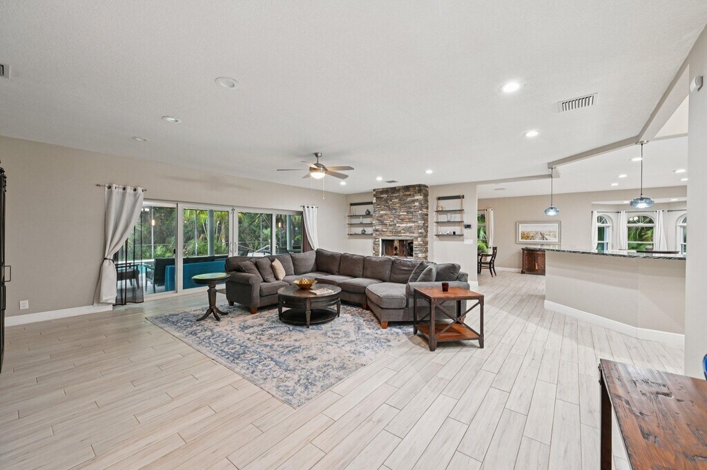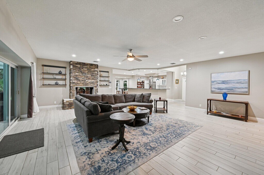 Experience the best of Jupiter Farms living on this private 2.5-acre estate. This beautifully designed 4,767 sq. ft. ranch home offers an inviting open floor plan with a dual-sided fireplace connecting the great room and dining area. The bright, spacious kitchen features a large breakfast bar and casual dining space--perfect for gatherings. The primary suite includes a luxurious bath with dual vanities and an oversized shower, while two guest rooms enjoy peaceful pond views. Step outside to a heated pool surrounded by lush landscaping and a six-car, climate-controlled garage with RV and boat storage. Close to shops, Publix, parks, restaurants and PBI.