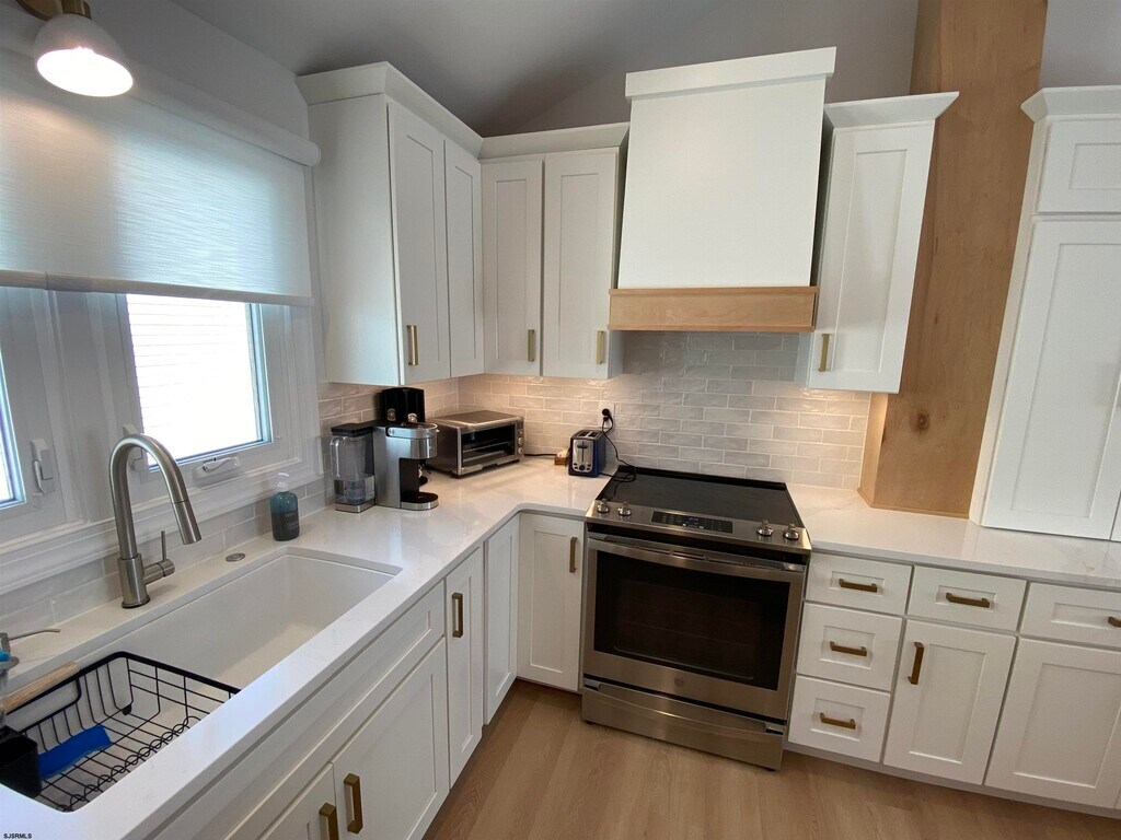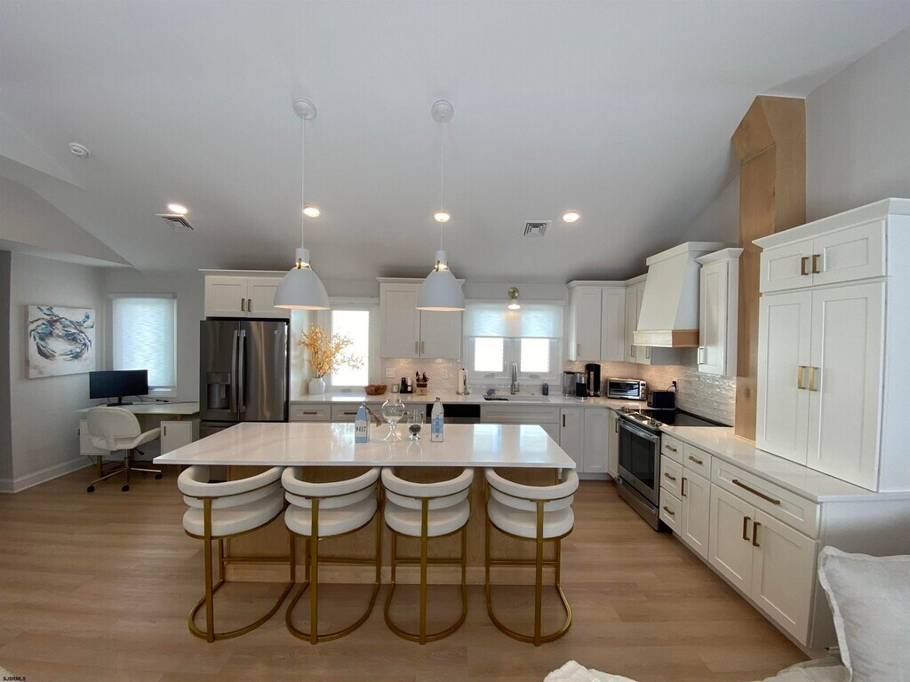 9417 Winchester Ave #C, Margate City – WINTER RENTAL Experience stylish coastal living in this beautifully updated TOP-FLOOR residence in Margate’s MARINA DISTRICT. Offering 3 bedrooms, 2 baths, and approximately 1,150 square feet, this seasonal rental blends modern finishes with a prime location just two blocks from the bay and four blocks to the beach. The open living area welcomes you with vaulted ceilings, recessed lighting, and light wood flooring that enhances the airy feel. Sliding doors extend the space onto a furnished balcony. The kitchen is a centerpiece, featuring quartz countertops, shaker cabinetry, stainless steel appliances, a large island with seating, and an adjacent work-from-home nook. The primary suite offers a serene retreat with its own balcony, a large closet, and a spa-like bath with a dual vanity, illuminated mirrors, and a glass-enclosed shower with designer tile. TWO additional bedrooms provide flexibility for sleeping, working, or relaxing, with one offering its own balcony retreat. The hall bath is updated with a walk-in shower and stylish modern touches. Light wood flooring flows throughout, creating a bright and cohesive feel. Added touches like ceiling fans, upgraded lighting, and thoughtful décor make this home both comfortable and stylish. Practical perks include TWO COVERED PARKING SPACES, a private STORAGE room for bikes and beach gear, and INCLUDED services such as INTERNET, water, trash, and MONTHLY CLEANING. Located close to Margate’s best dining and nightlife—including Steve & Cookies, Tomatoes, Tidelands, and Maynard’s—this property combines convenience, charm, and style. Flexible rental dates are available, ideally November through May. Schedule your showing today and make this modern Marina District retreat your seasonal escape.