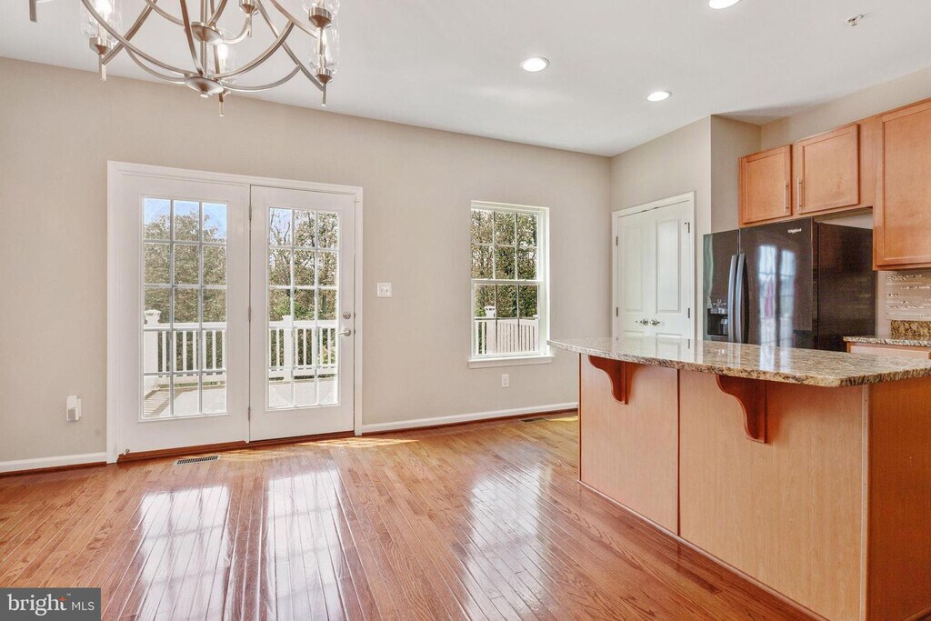 Beautiful 3 bedroom, 1 den, 3 full baths, and 1 half bath end-unit townhome located in the highly sought after community of Esplanade at Red Run in Owings Mills, Maryland. Hardwood floors throughout main and upper levels. Gourmet kitchen with breakfast area, island, granite countertops and access to the large deck. Primary bedroom suite with private bath an ceiling fan. The two other bedrooms share the full bathroom in the hallway. Washer and dryer on the upper level. Finished walk out basement with a den that could be used as a fourth bedroom and a full bath. Conveniently located near shops, restaurants, Costco, I-795, Red Run Blvd, Owings Mills Blvd and other major routes. Must see! Professionally managed. Online application, $50/application fee per each individual adult occupant. Excellent credit required. Pets case by case, $500 pet deposit and $50/month pet rent per pet. Tenant occupied. Touch up work and professional deep clean will be done before move-in.