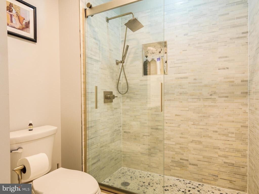 Rarely available! Exceptional 3 bedroom/3.5 bath townhome is finely appointed with rich finishes throughout. Gleaming hardwood floors in the living and dining area. Renovated kitchen with granite counters, stainless appliances, plenty of storage & access to deck overlooking babbling brook and woods. Spectacular primary suite offers vaulted ceilings, incredible private bath with dual sinks and glass shower. Walkout lower level w/rec room, office, full bath, laundry room & storage. Fenced rear yard w/patio. Parking is a breeze- 2 spots right in front of the home. Enchanting views & sounds of calming stream from the deck- a wonderful respite. Owner requires 720+ credit score & references. Vouchers ok.